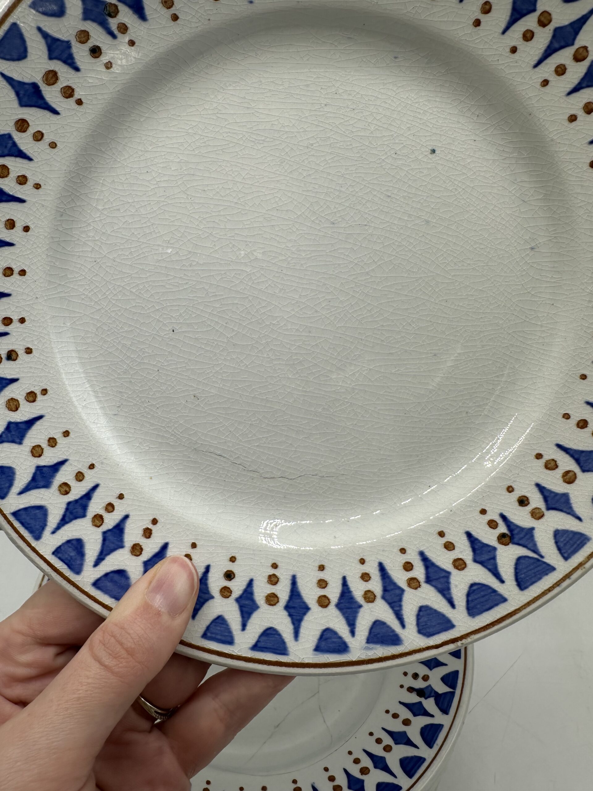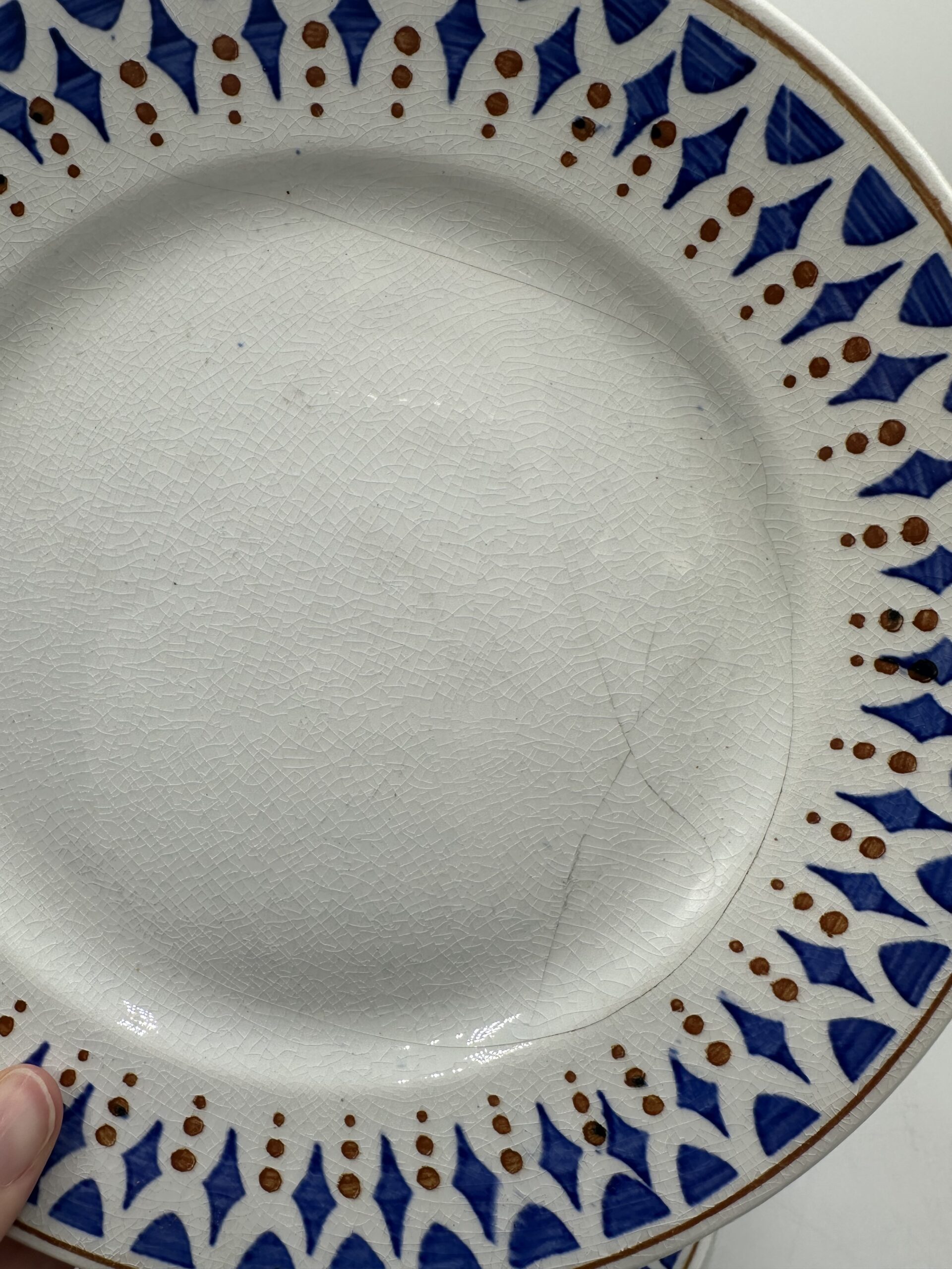 Bien qu’anciennes, elles restent en bon état général ! Il n’y a pas de casse ou d’éclats. Seule une assiette présente des fissures. (bien regarder les photos).