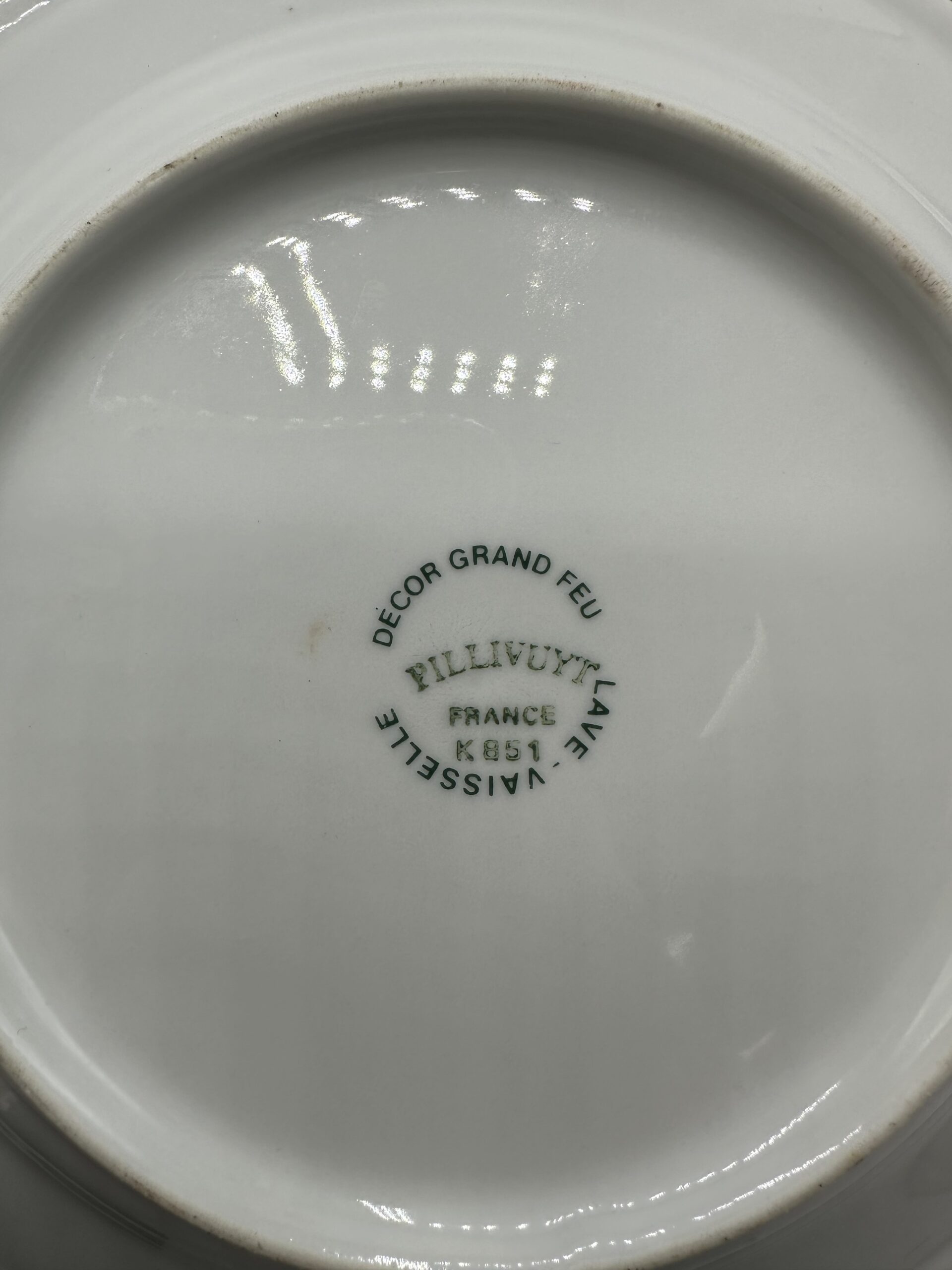 Pour les chineurs et les amoureux de vaisselle ancienne. Voici un ensemble de 6 assiettes à dessert Pillivuyt.