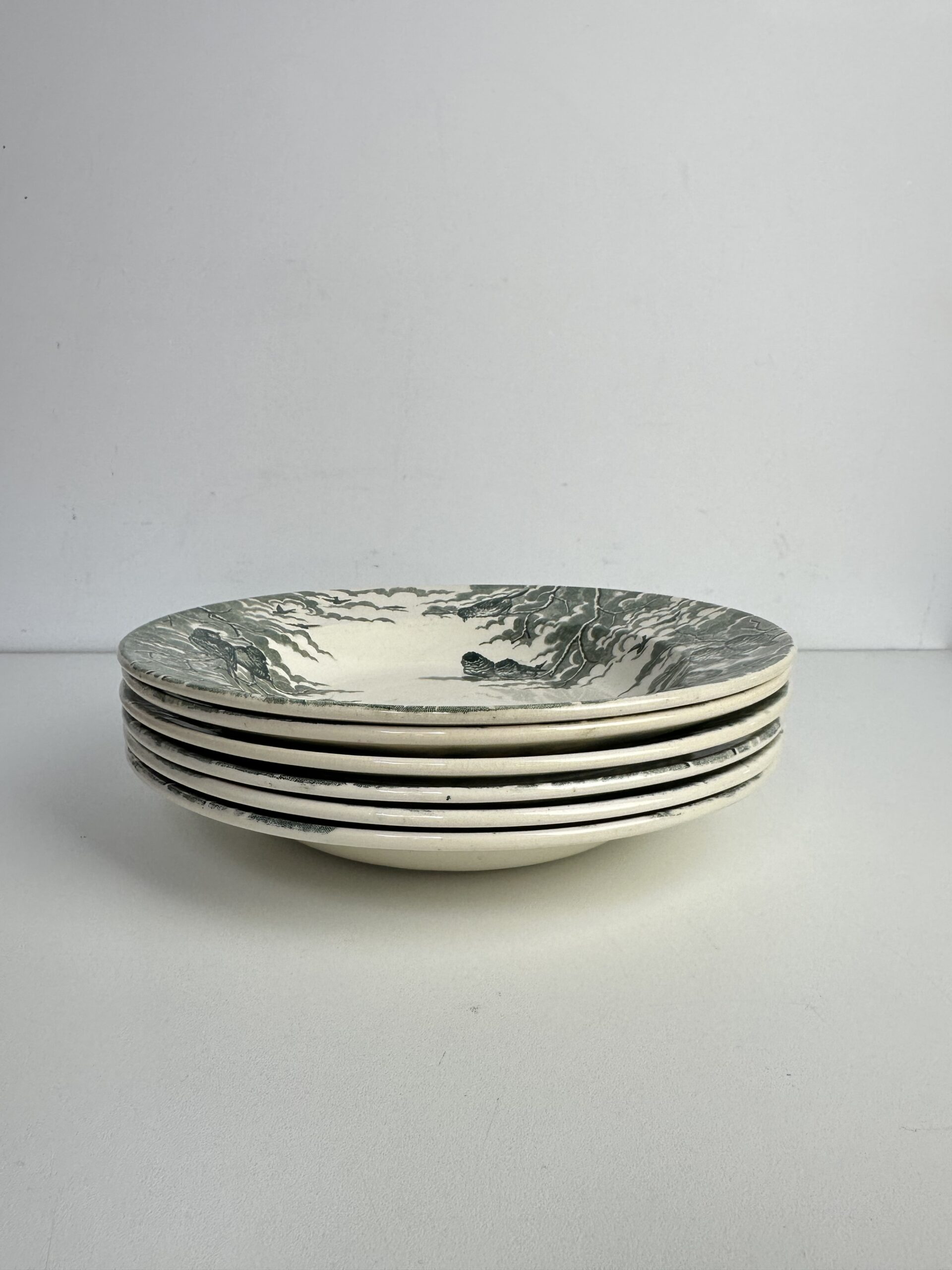 Les 6 assiettes sont en très bon état général, sans éclats, ni fissures, ni casse. Une légère patine s’est déposée et il peut y avoir de légères traces d’usures, tout à fait normales vue leur âge.