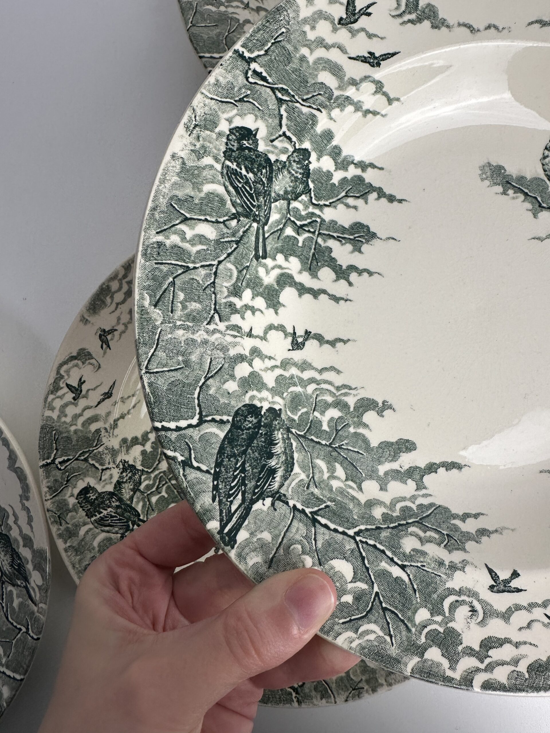 Alors pour les amateurs de veille vaisselle, d’assiettes anciennes rares ou simplement par coup de coeur, adoptez ces 6 assiettes creuses Sarreguemines Neige U&C.