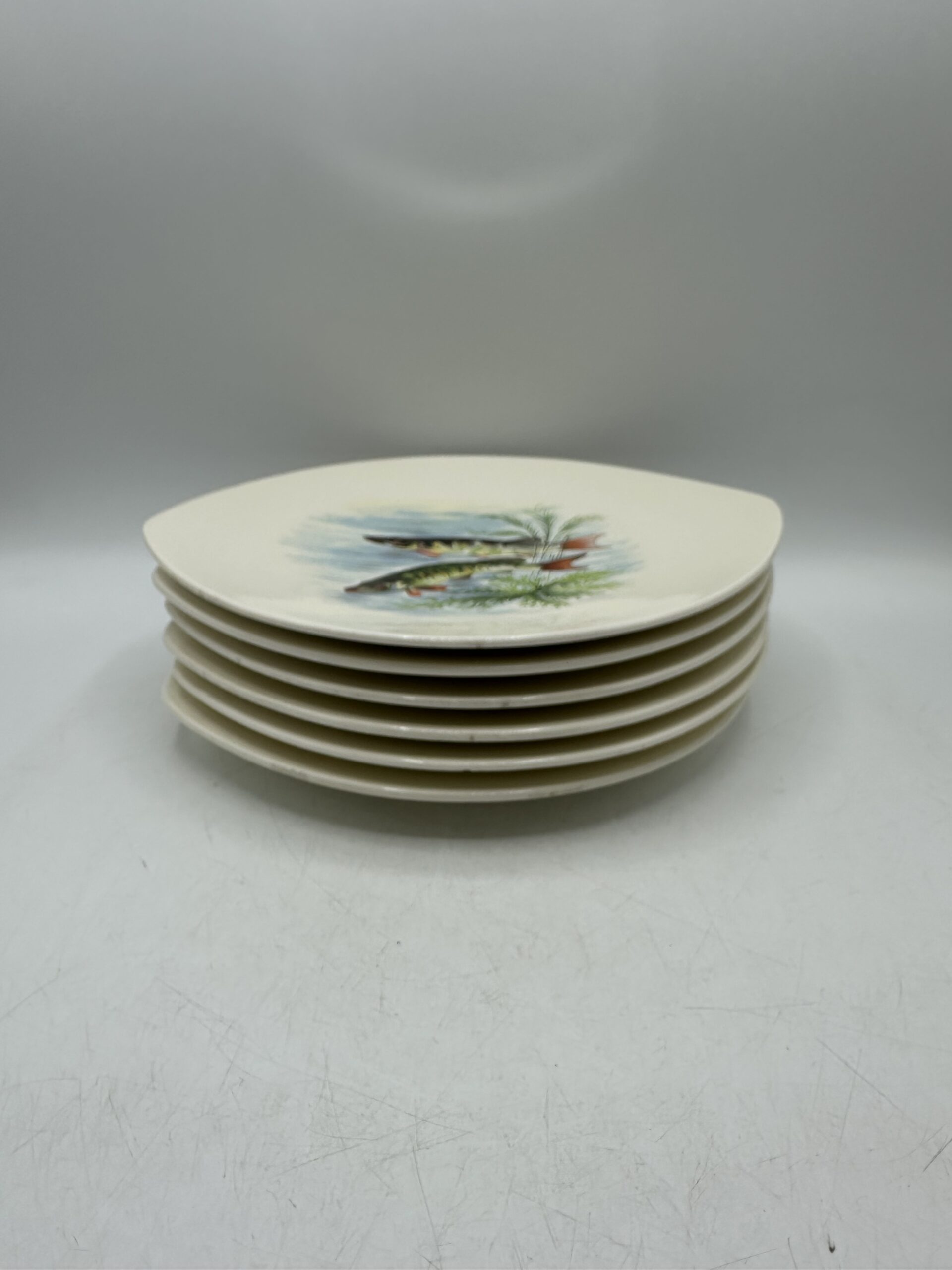 Pour vous les chineurs et les amateurs de vaisselle originale et signée, vous allez aimer ces 6 assiettes poissons Salins.