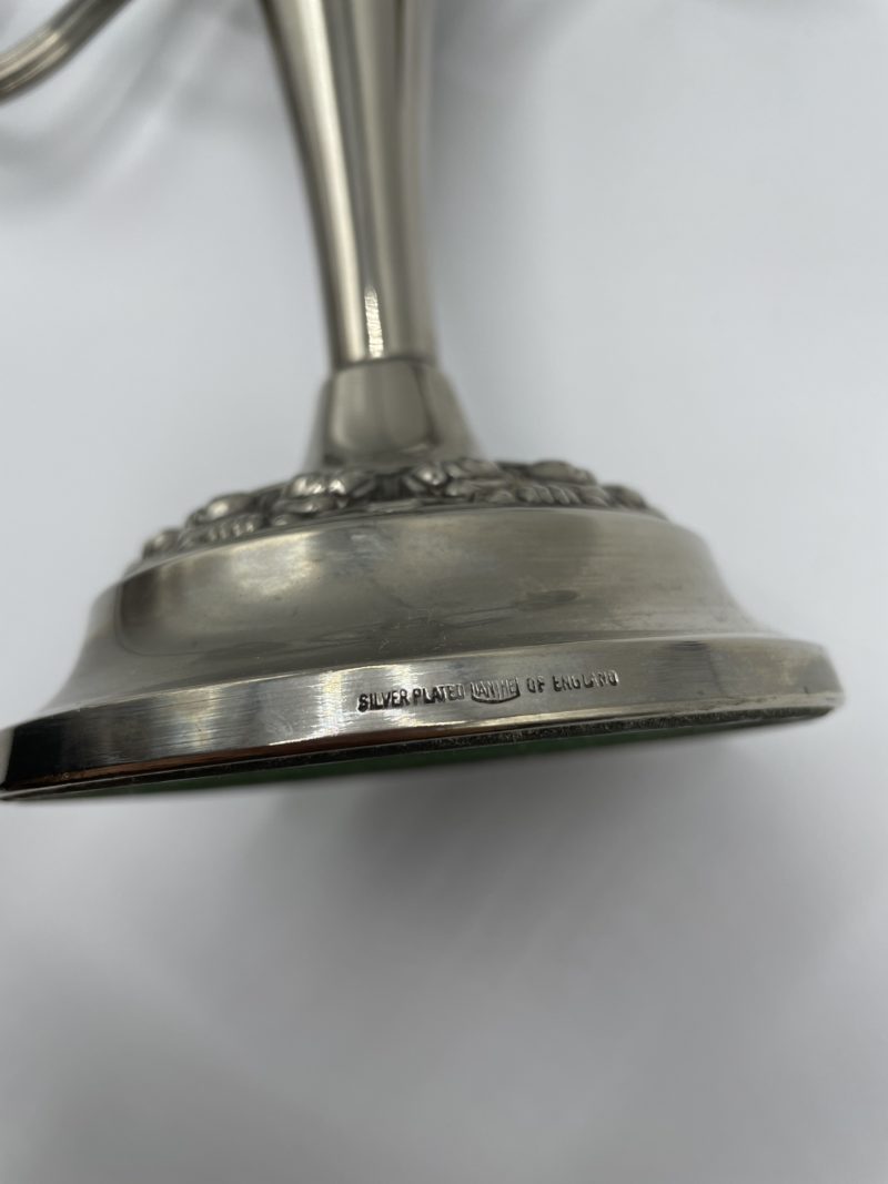 Ancien chandelier à 3 feux style victorien, époque années 60/70 en plaqué argent. Très bel objet, les branches du chandelier sont torsadées. Un petit nettoyage est à prévoir.