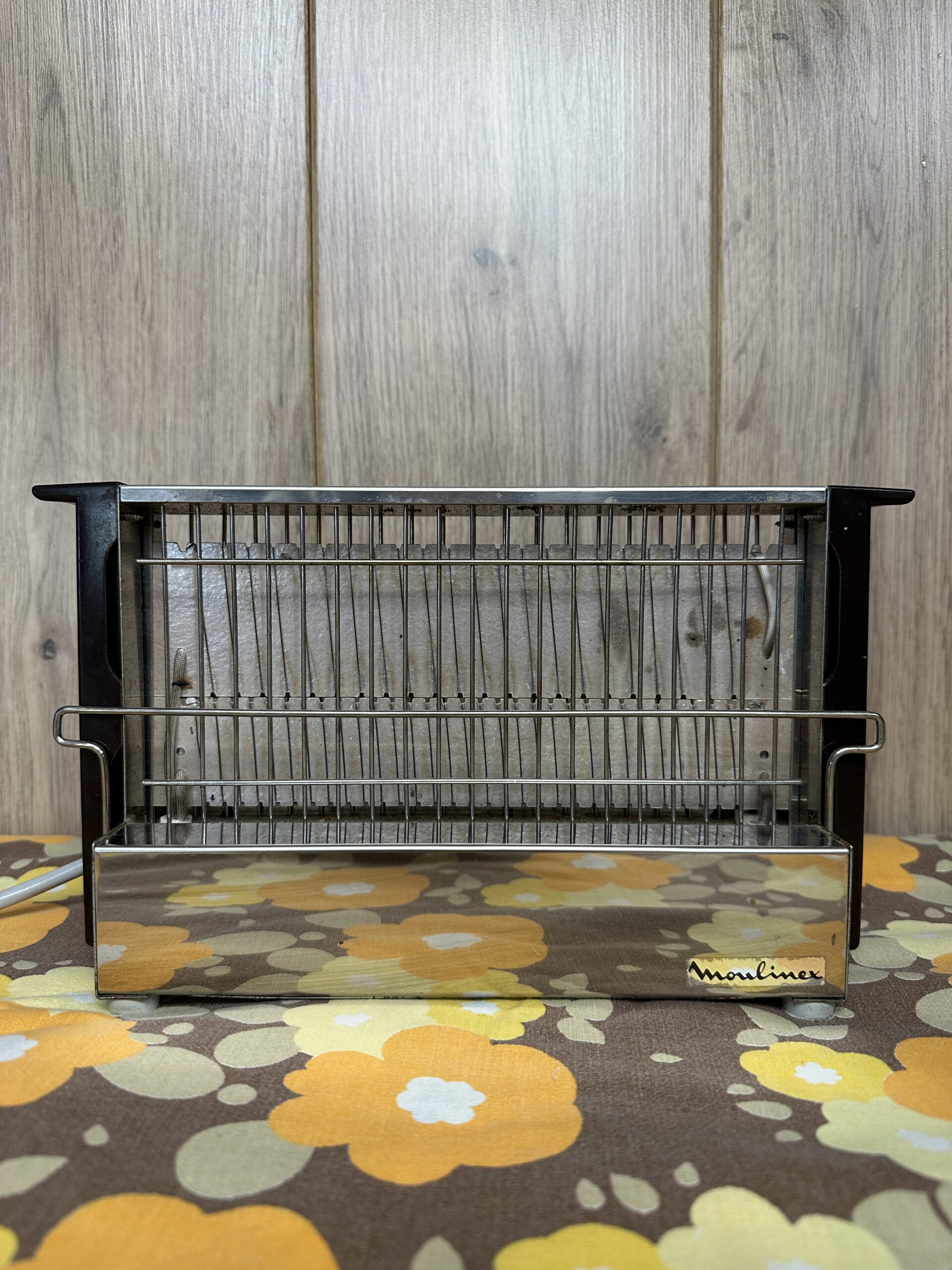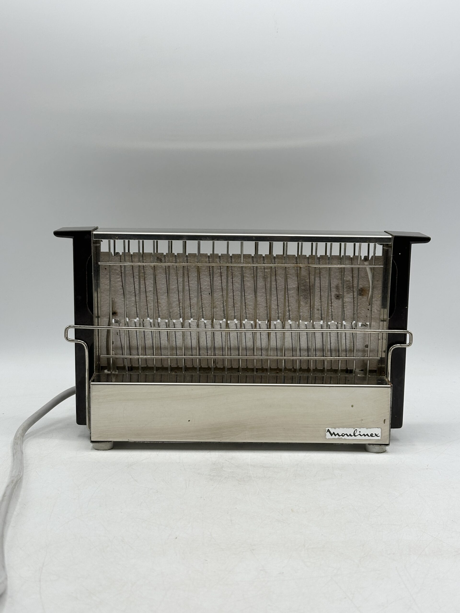 Nostalgiques d’une autre époque ou tout simplement collectionneurs d’objets anciens vintage, voici un ancien grille pain Moulinex Vintage.