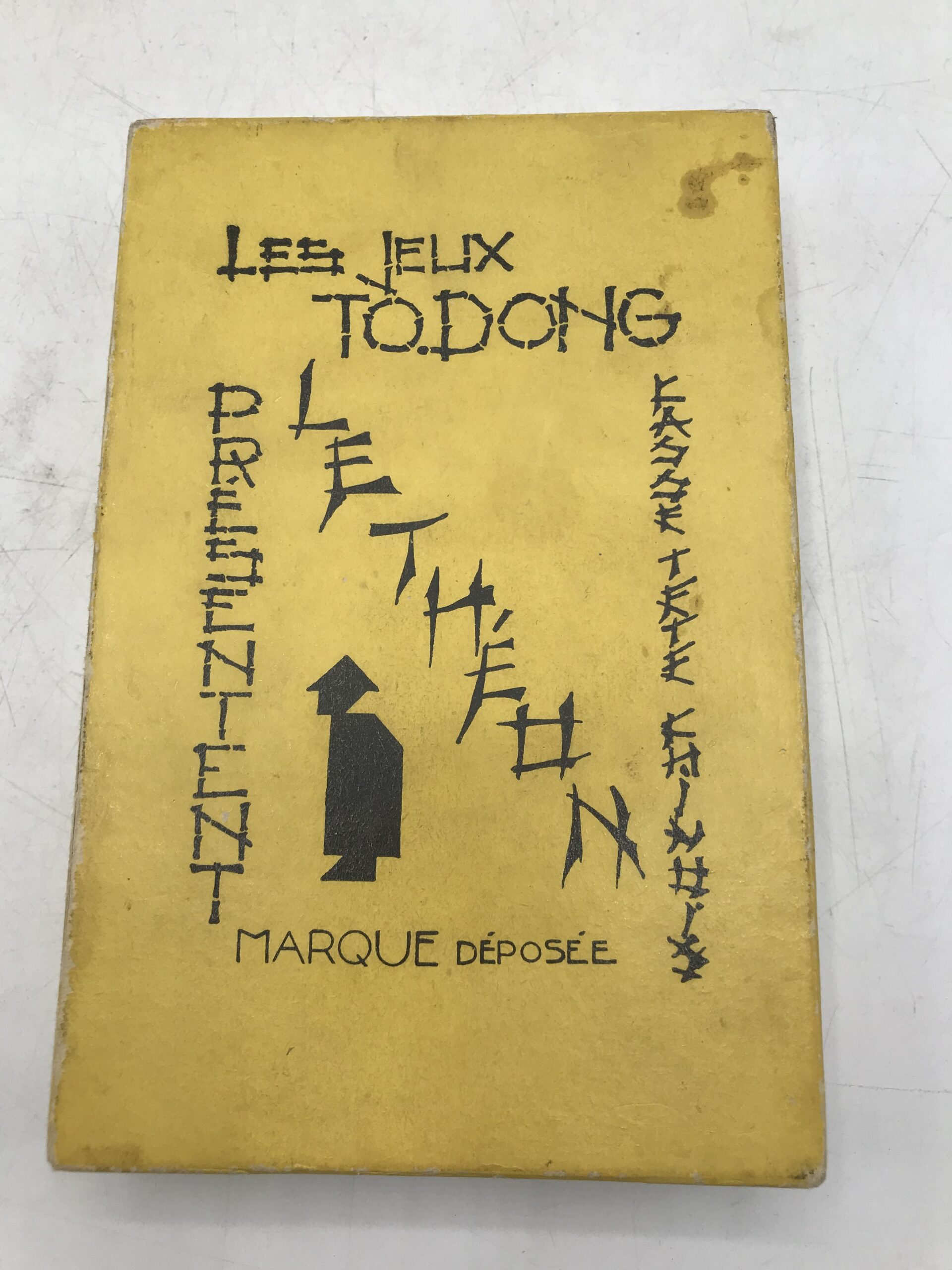 Ancien jeu casse tête Todong le theon Asie. Ancien jeu de casse tete ou il faut reformer des dessins avec des pièces de bois. Le jeu est complet 14 pièces de bois et ses fiches. Le jeu date de 1950 et vient d’Asie. Le plaisir des jeux anciens avec un principe qui n’a pas vieilli. Vous allez pouvoir passer de longues heures à reformer les modèles. Ce qui sera une bonne occasion de passer du temps entre amis ou en famille loin des écrans. Le vintage a du bon. Prêts pour le GAME!!! A noter la boite est tachée car elle n’est plus toute jeune.