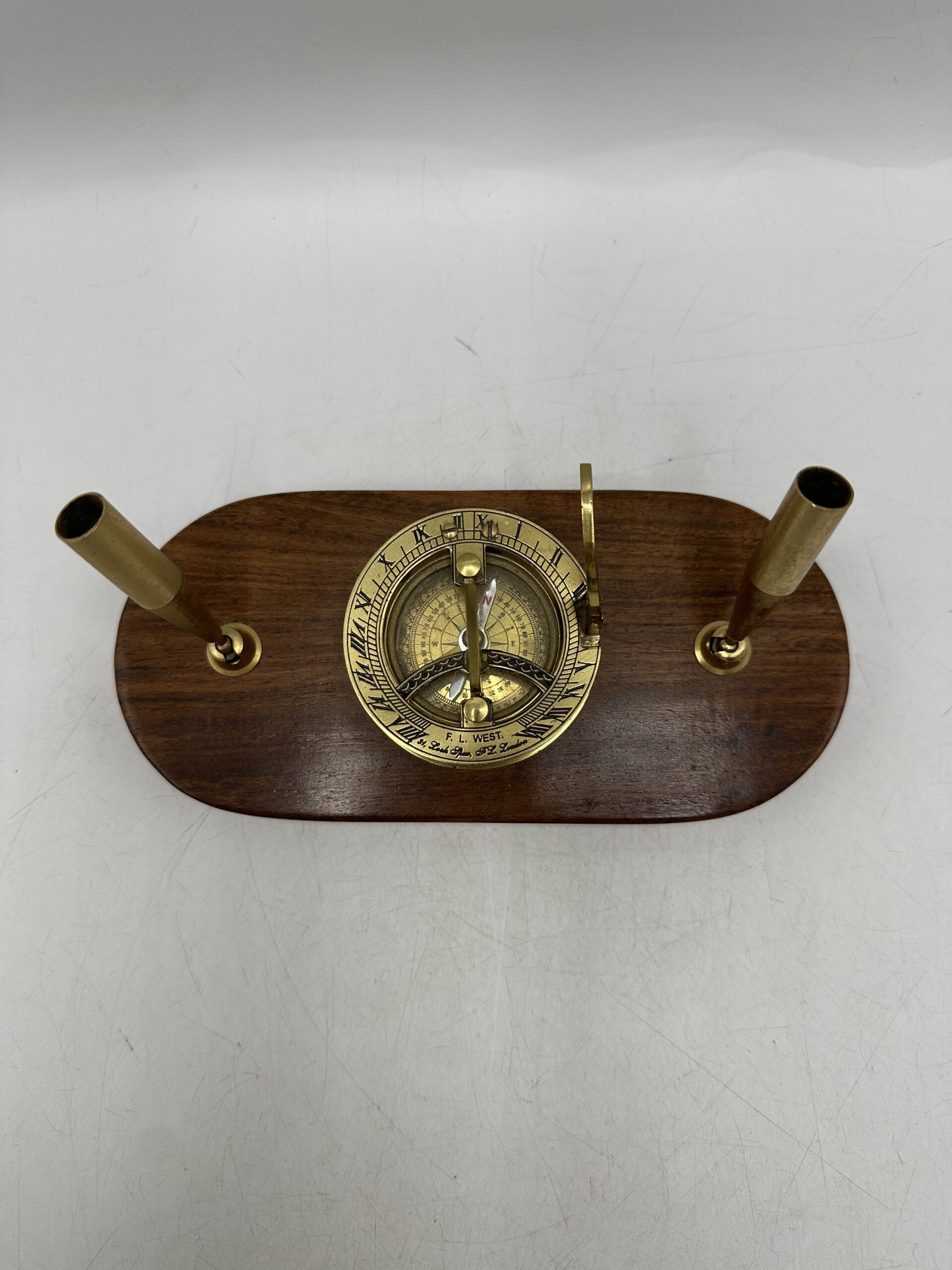 Cette ancienne boussole à cadran solaire F.L. WEST est une pièce intéressante à exposer dans un cabinet de curiosités, une bibliothèque ou un bureau.