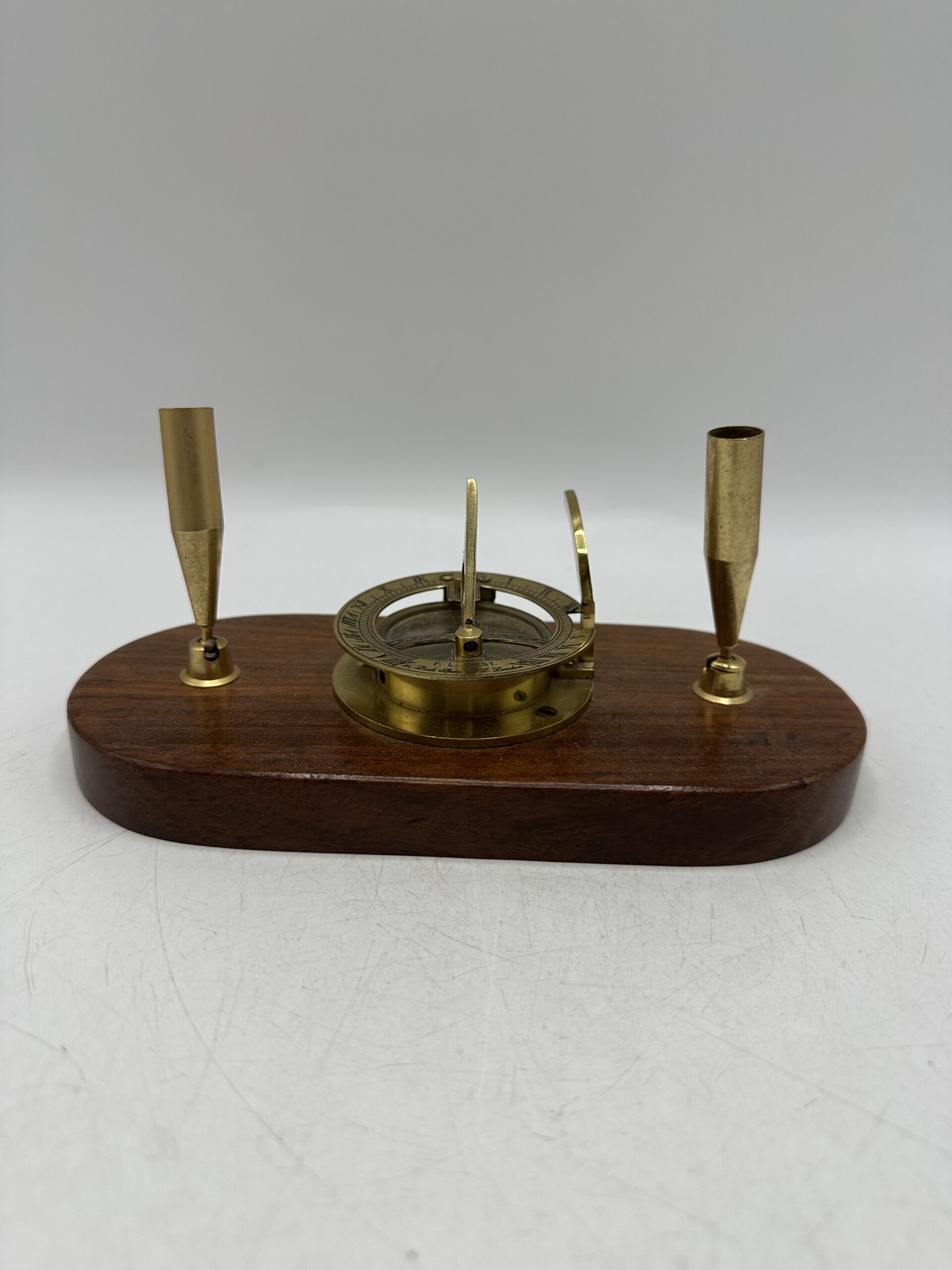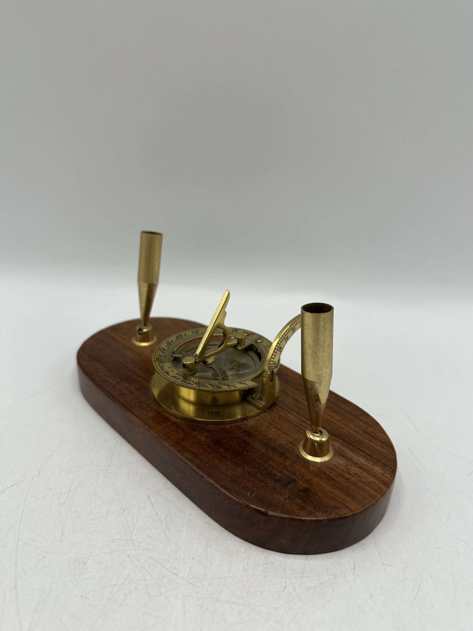 La boussole est en bon état général. Elle est proposée à la vente en tan qu’objet décoratif ! Le cadran solaire est finement gravé et les indications sont lisibles.