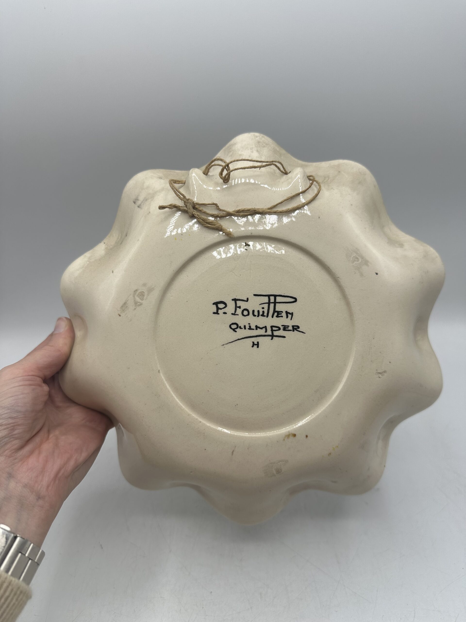 Voici l’assiette ou coupe Quimper P. Fouillen. Une création artisanale au charme typique au authentique de la Bretagne.