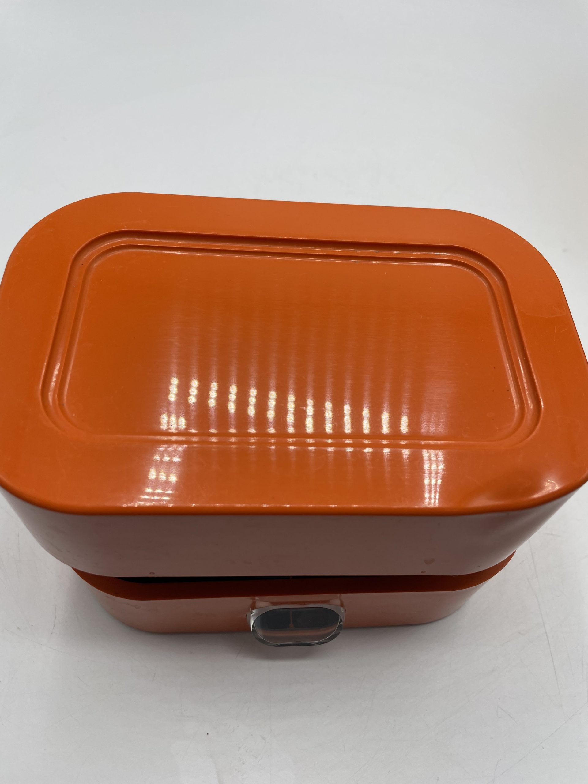 De couleur orange, cette balance de cuisine vintage de la marque TERRAILLON modèle 4000 est en parfait état de marche. Équipée de son bac à pesée en plastique noir transparent qui lui sert aussi de couvercle, la balance est idéale pour des petits poids jusqu’à 4kg, cette balance apportera la touche pop, funky et retro typique des années 70 à votre cuisine. Vintage, un coup est à prévoir sur le dessus de la balance ce qui l’a un peu déformée. A la fois pratique et originale !