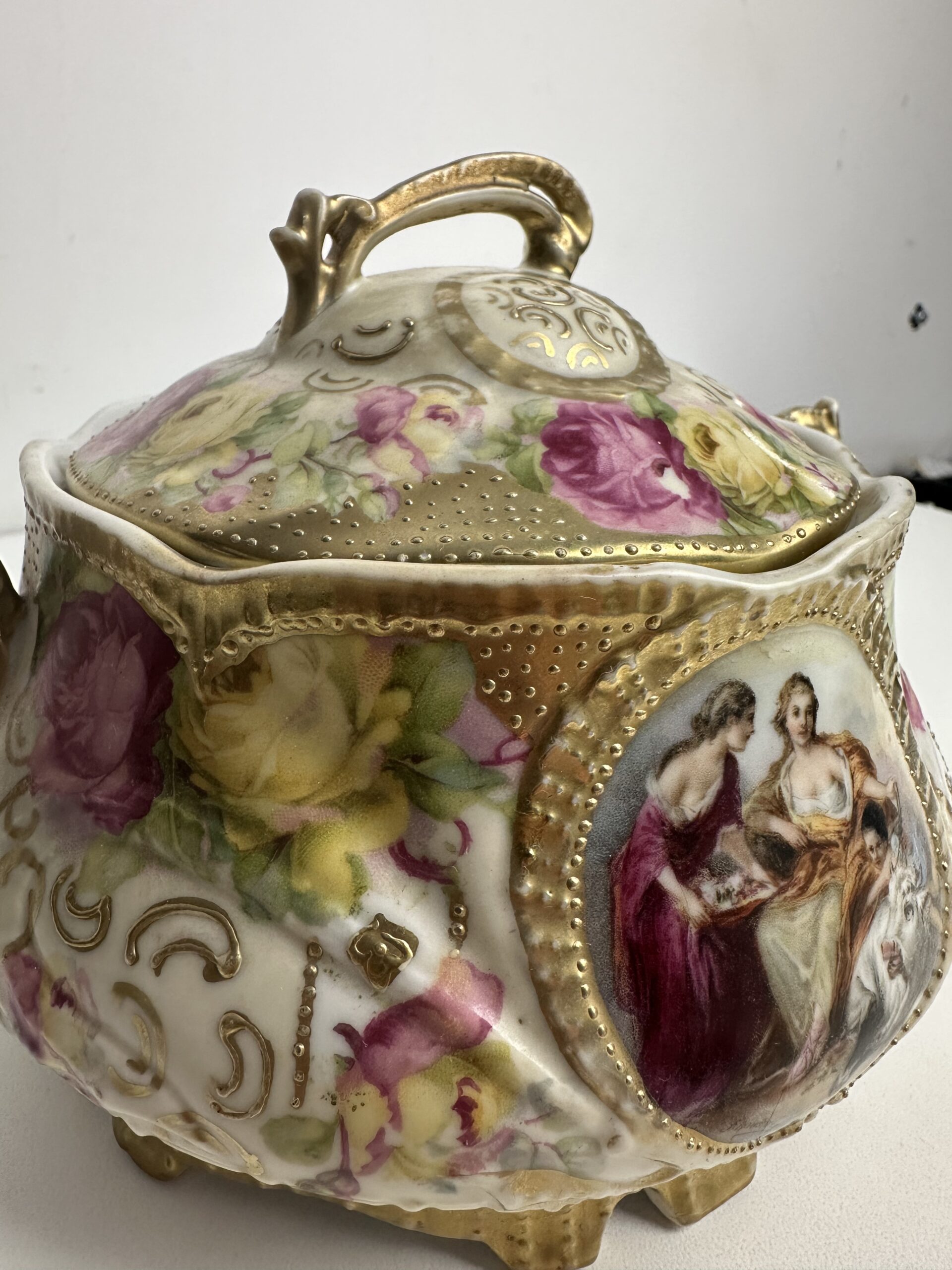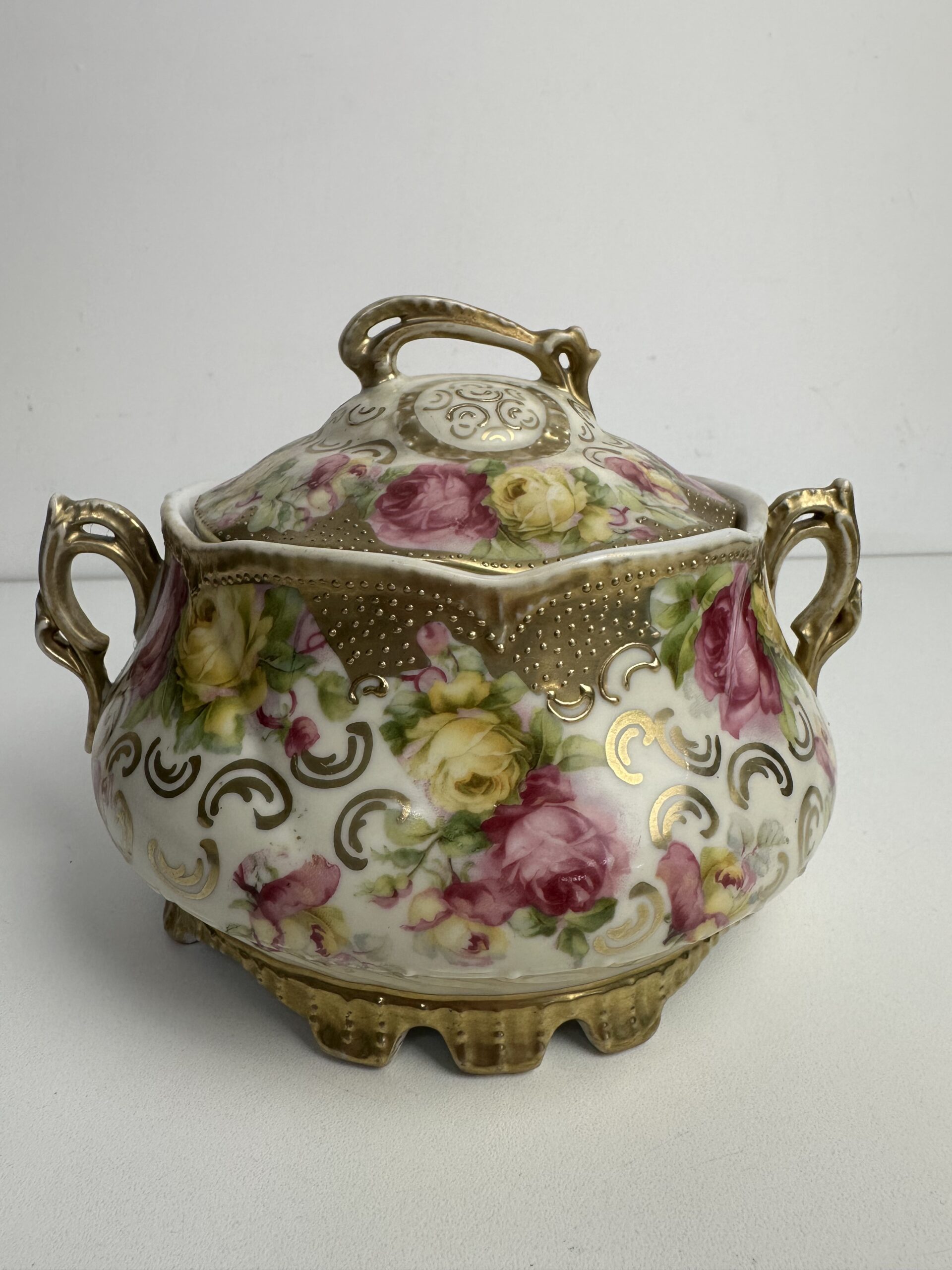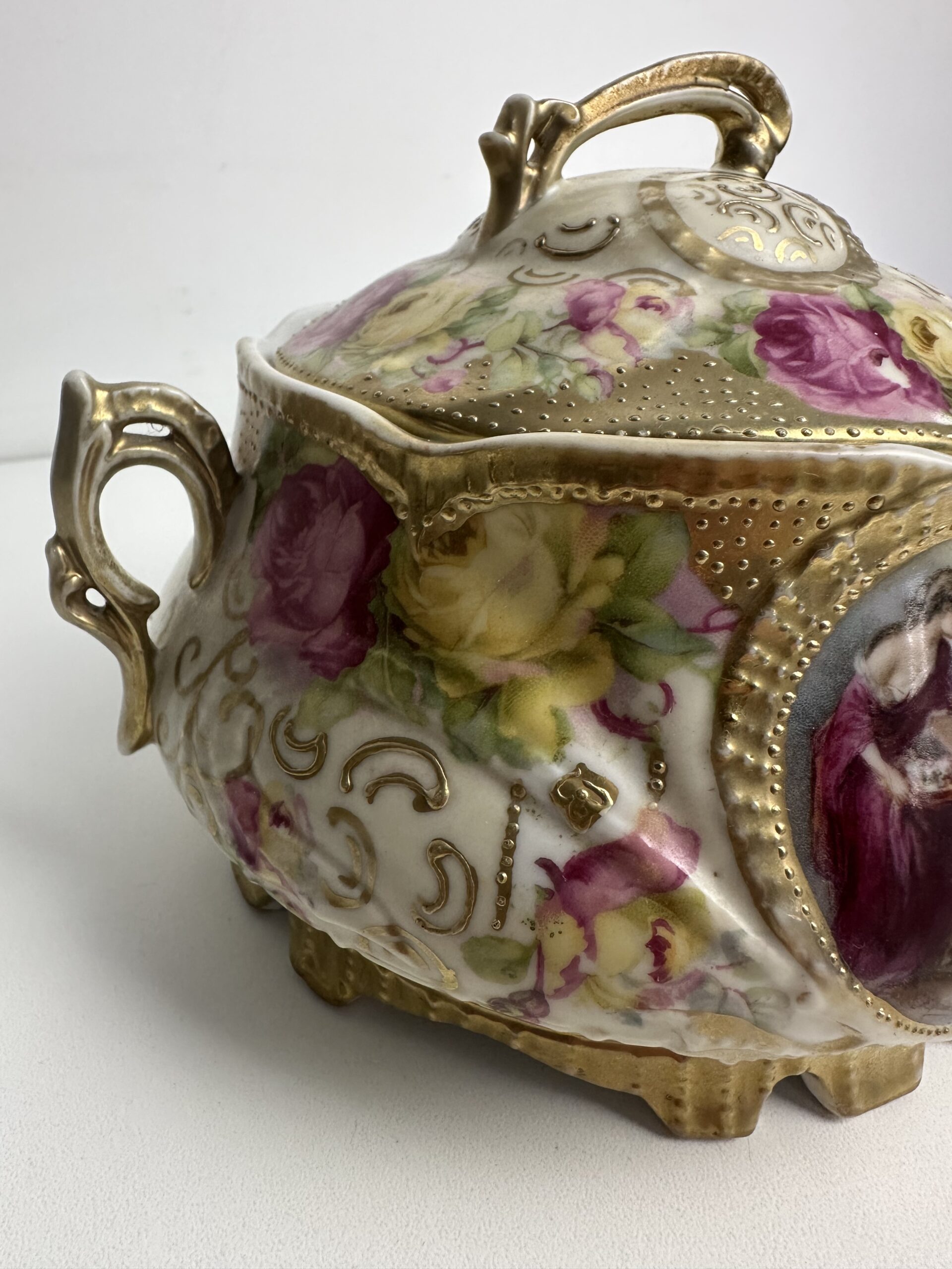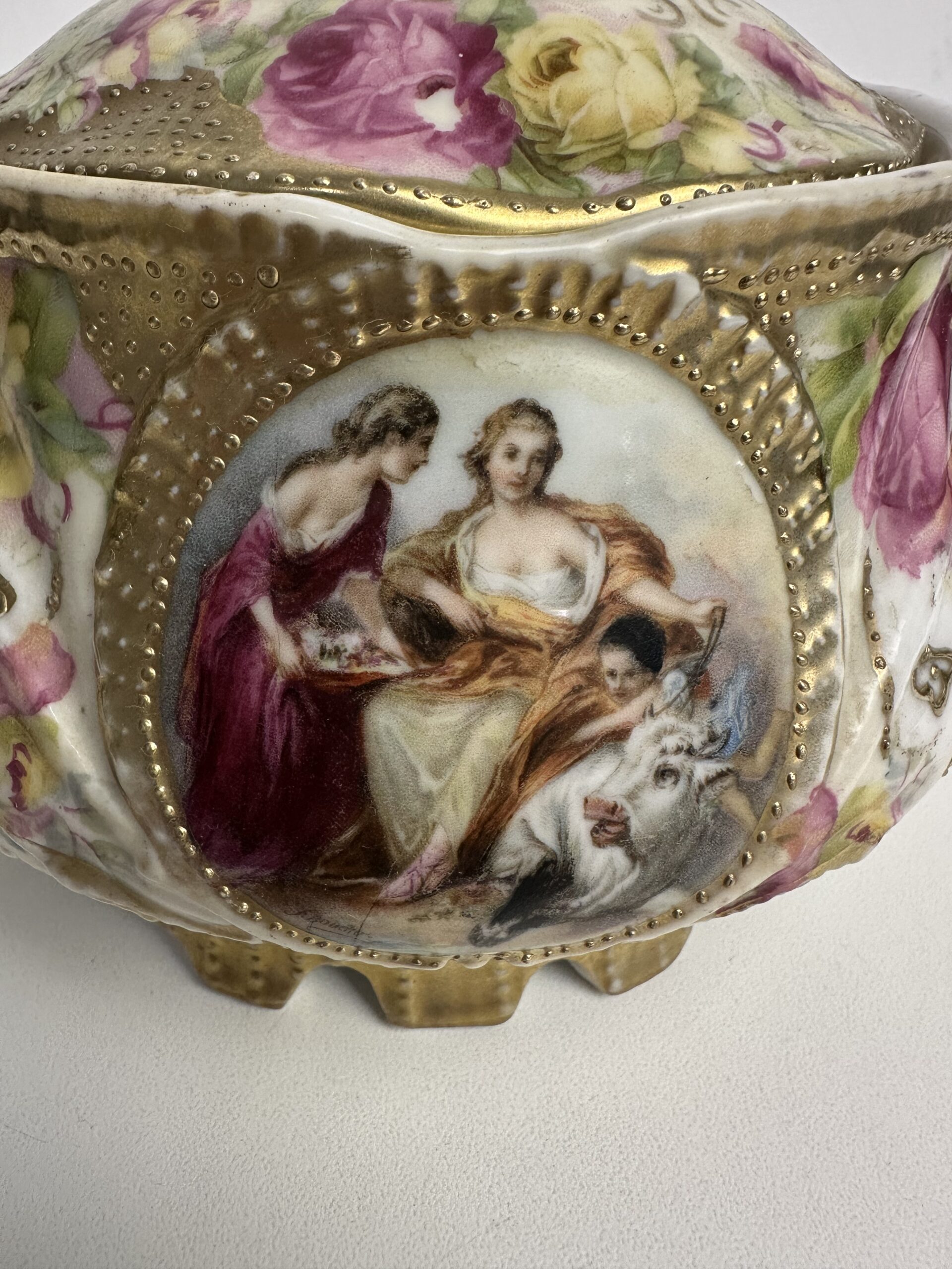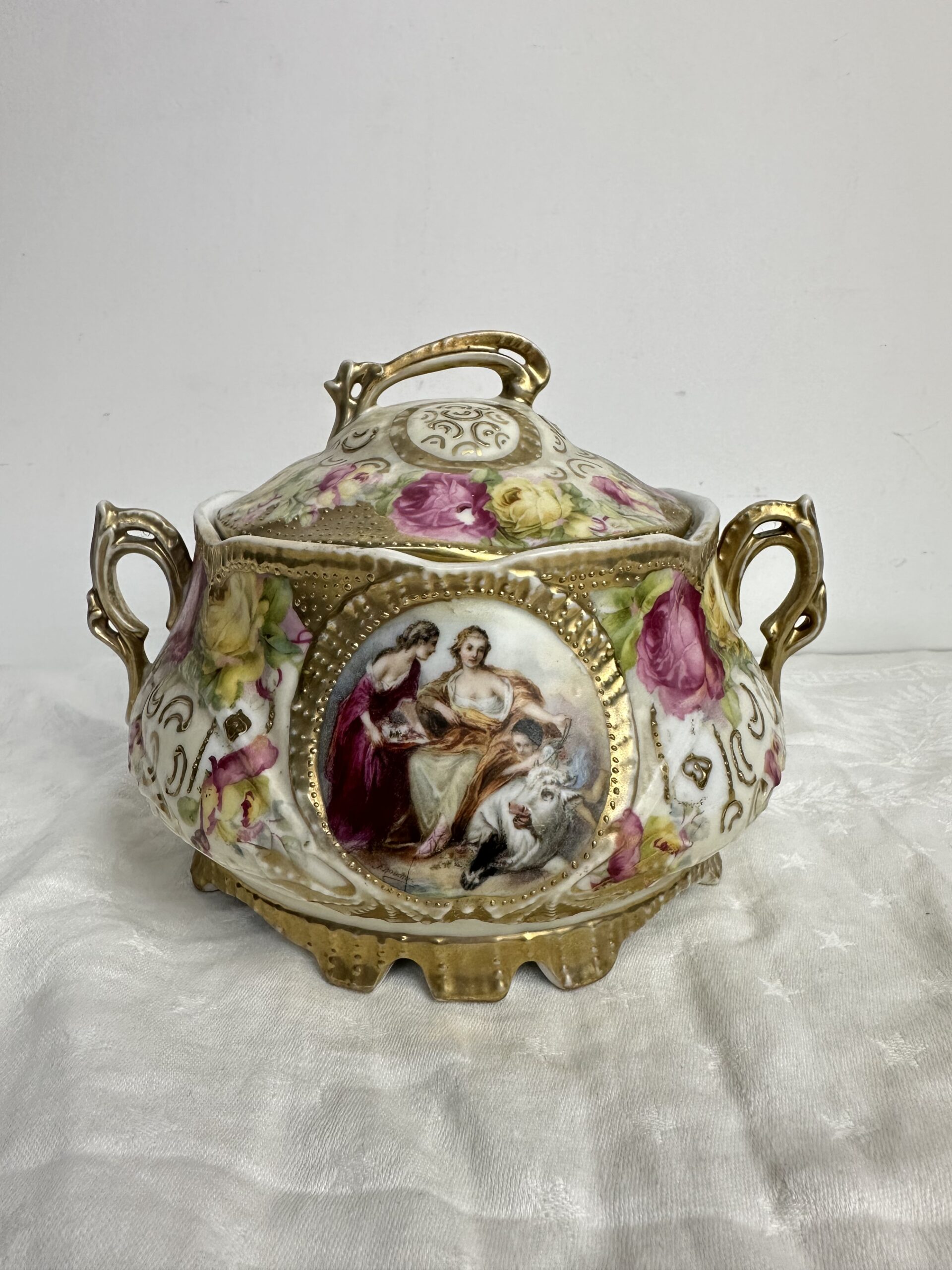 Cette boite ancienne en porcelaine romantique ravira les amateurs de décoration romantique ou de porcelaine vintage…