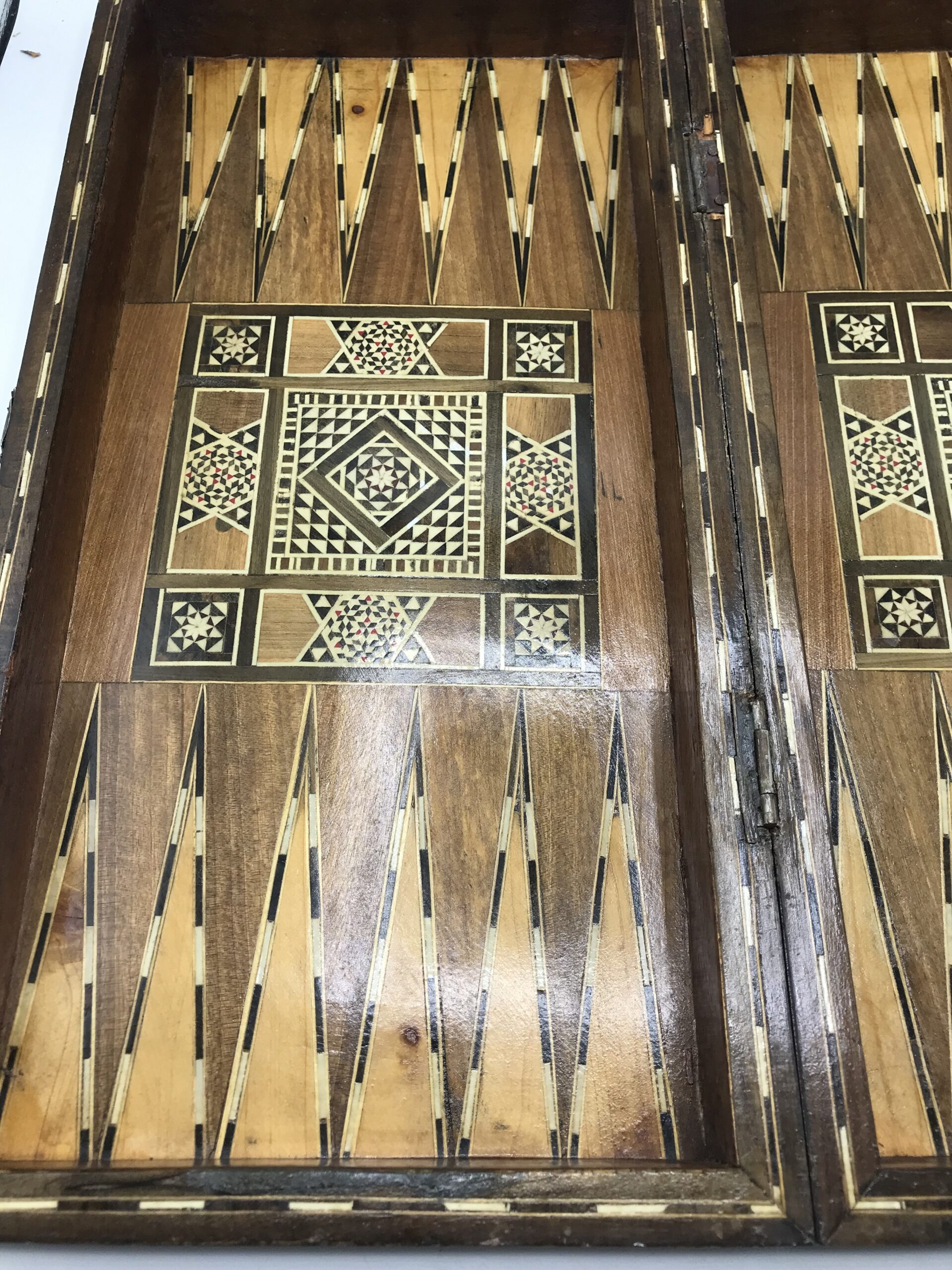 Boîte de jeu de société en bois pour backgammon et échecs en mosaïque mauresque syrienne incrustée. Superbe réalisation sur cette boite de jeux un travail magnifique de nacre et de mosaïque fait main. Les pions sont en plastique. Une belle bote ancienne pleine de charme et d’élégance, pour donner une autre dimension à vos parties de jeux. La boite porte des traces d’usure sur les angles du bois (cf photos). Une belle pièce à avoir chez soi. épatez vos amis en proposant une partie en fin de dessert.