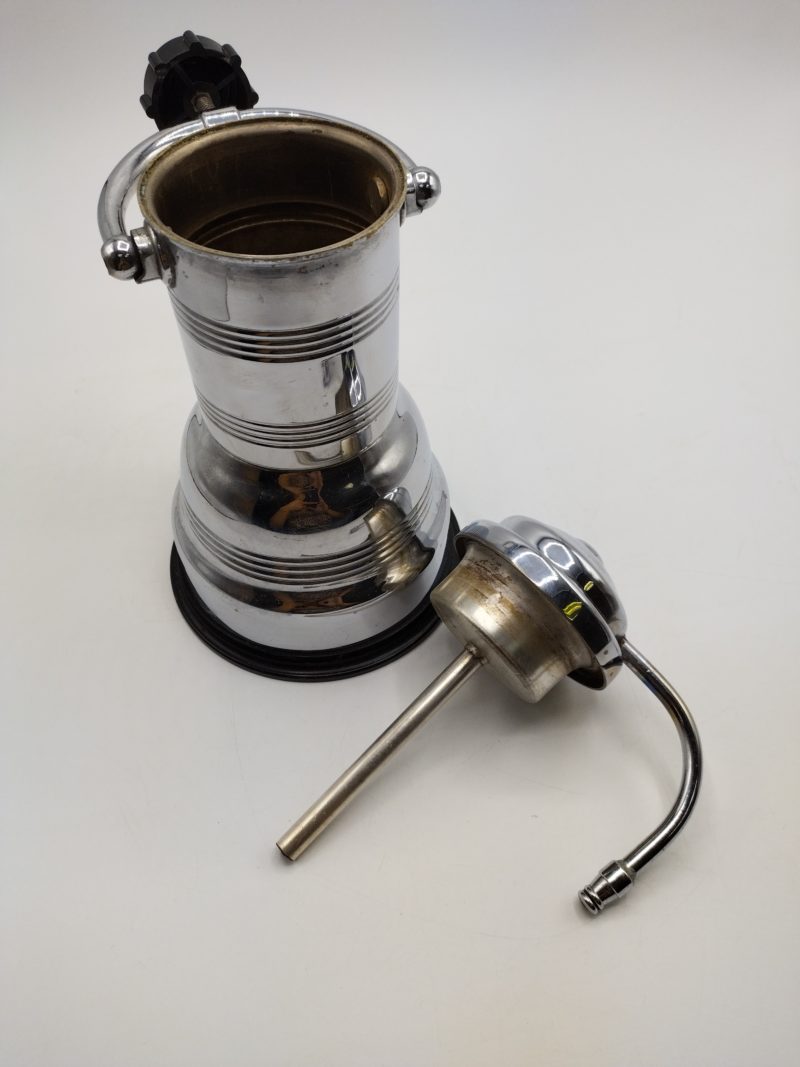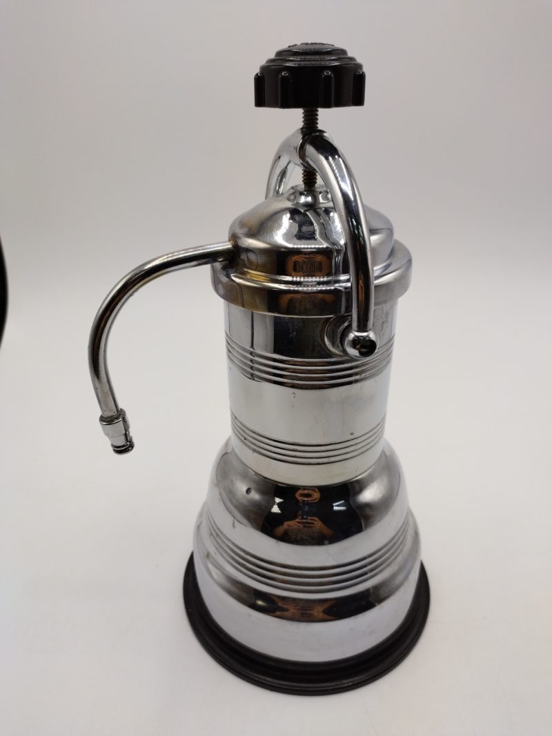 Amoureux d’objets vintage, cette jolie cafetière électrique est faite pour vous. De la marque Jema France, la cafetière en inox était produite dans les années 60. Vintage, il faudra prévoir une réparation et une prise électrique 115/125V, 375W pour s’assurer de son bon fonctionnement.Une belle cafetière vintage pour un esprit industriel vintage et rétro !