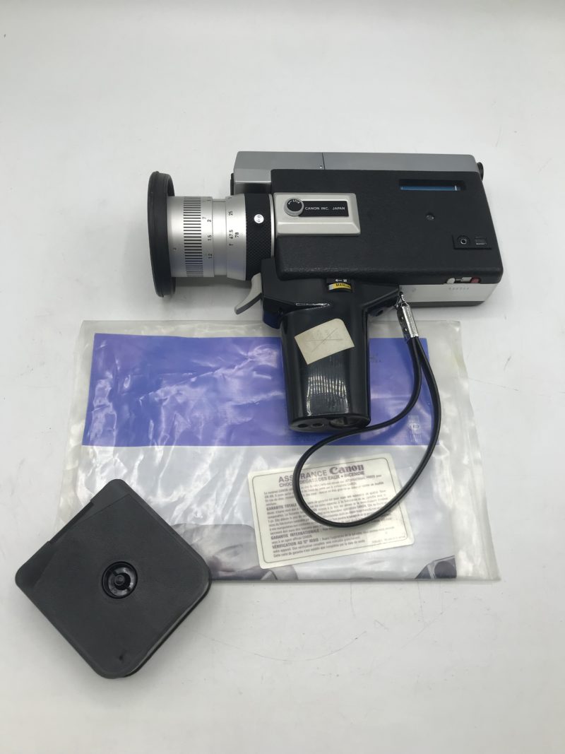 Superbe caméra super 8, de marque Canon auto zoom 518. Elle est en très bon état et livrée dans sa sacoche d’origine. Il y a sa notice fournie. La caméra n’a pas été testée mais au vu de son état elle doit fonctionner. Nous la vendons comme objet de déco, mais avis aux amateurs ou aux bricoleurs et experts. Il faudra un rien pour qu’elle soit en état de marche. Une belle pièce de collection qui peut encore vous faire vivre de beaux moments.