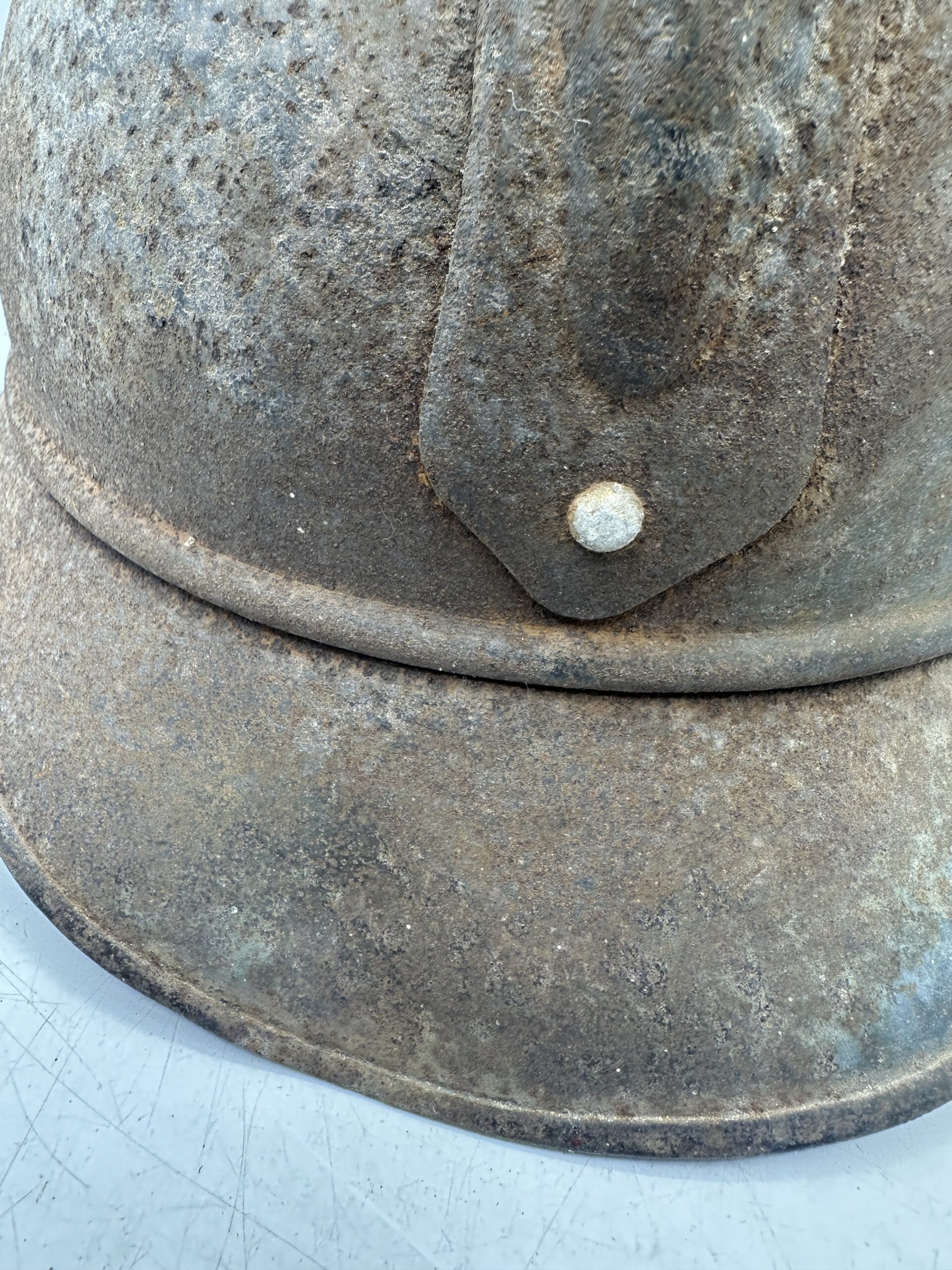 Le casque est rouillé et son intérieur en tissu/cuir ne tient plus en place. (Voir les photos pour les marques d’usures).