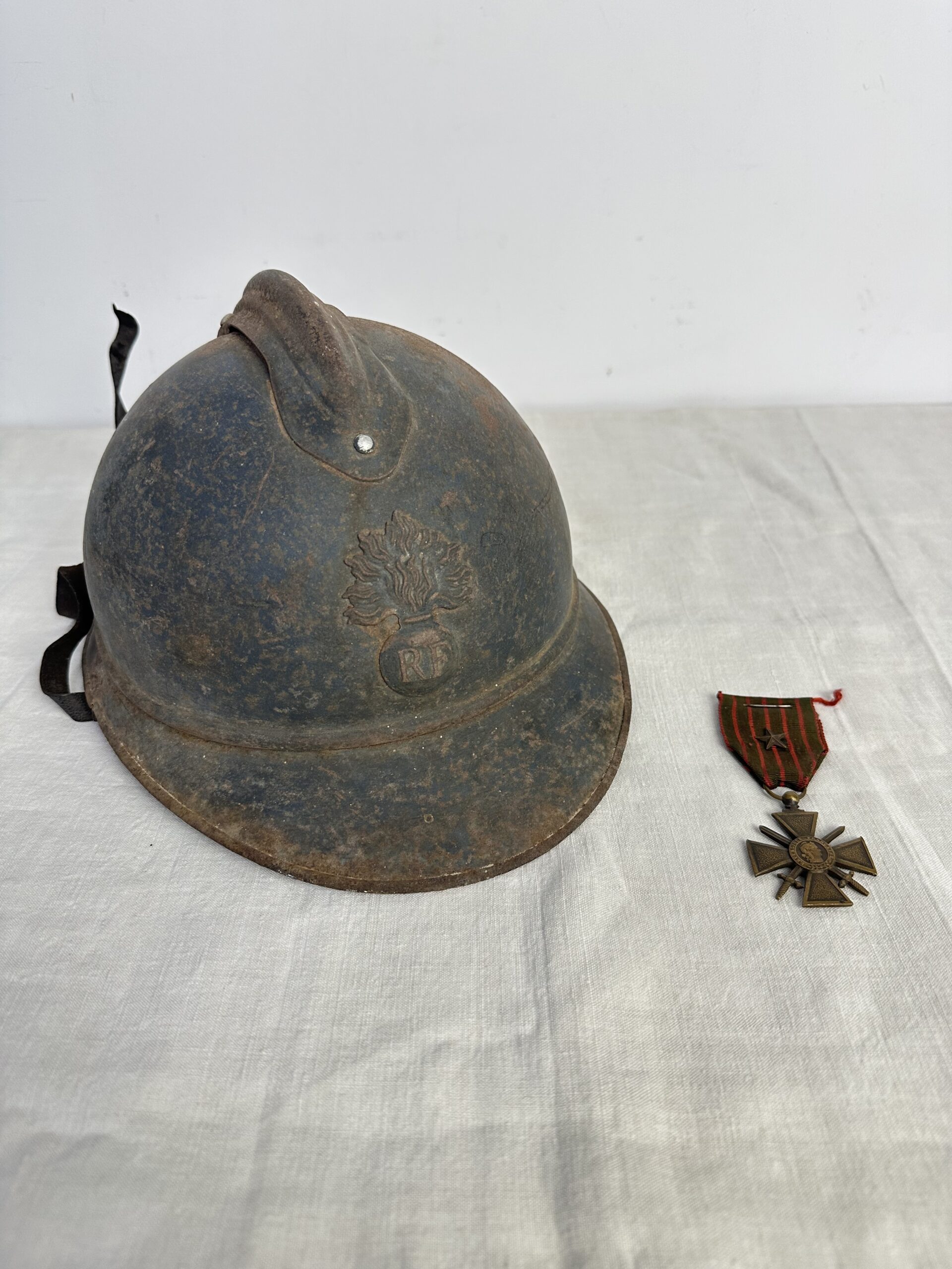 Vous êtes passionnés par l’histoire de France et par la Première Guerre Mondiale ? Voici donc le casque Adrian infanterie Première Guerre Mondiale France ainsi qu’une médaille militaire française Croix de Guerre 1914 1918.