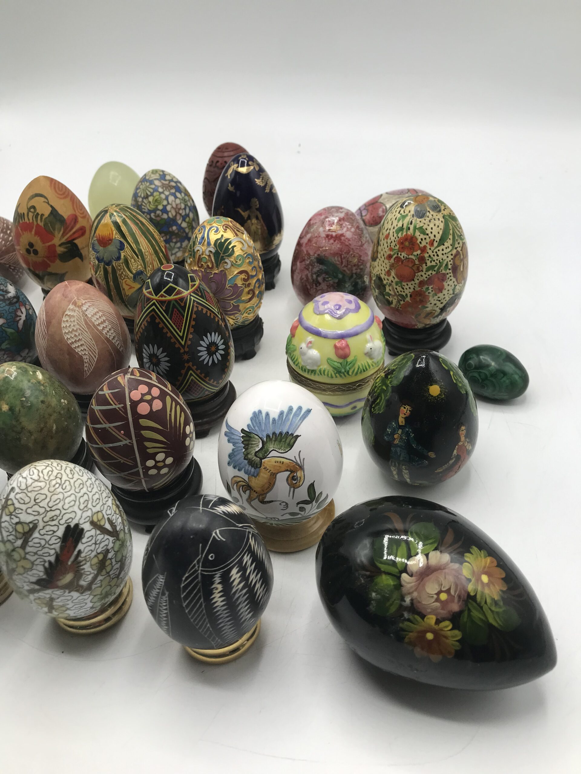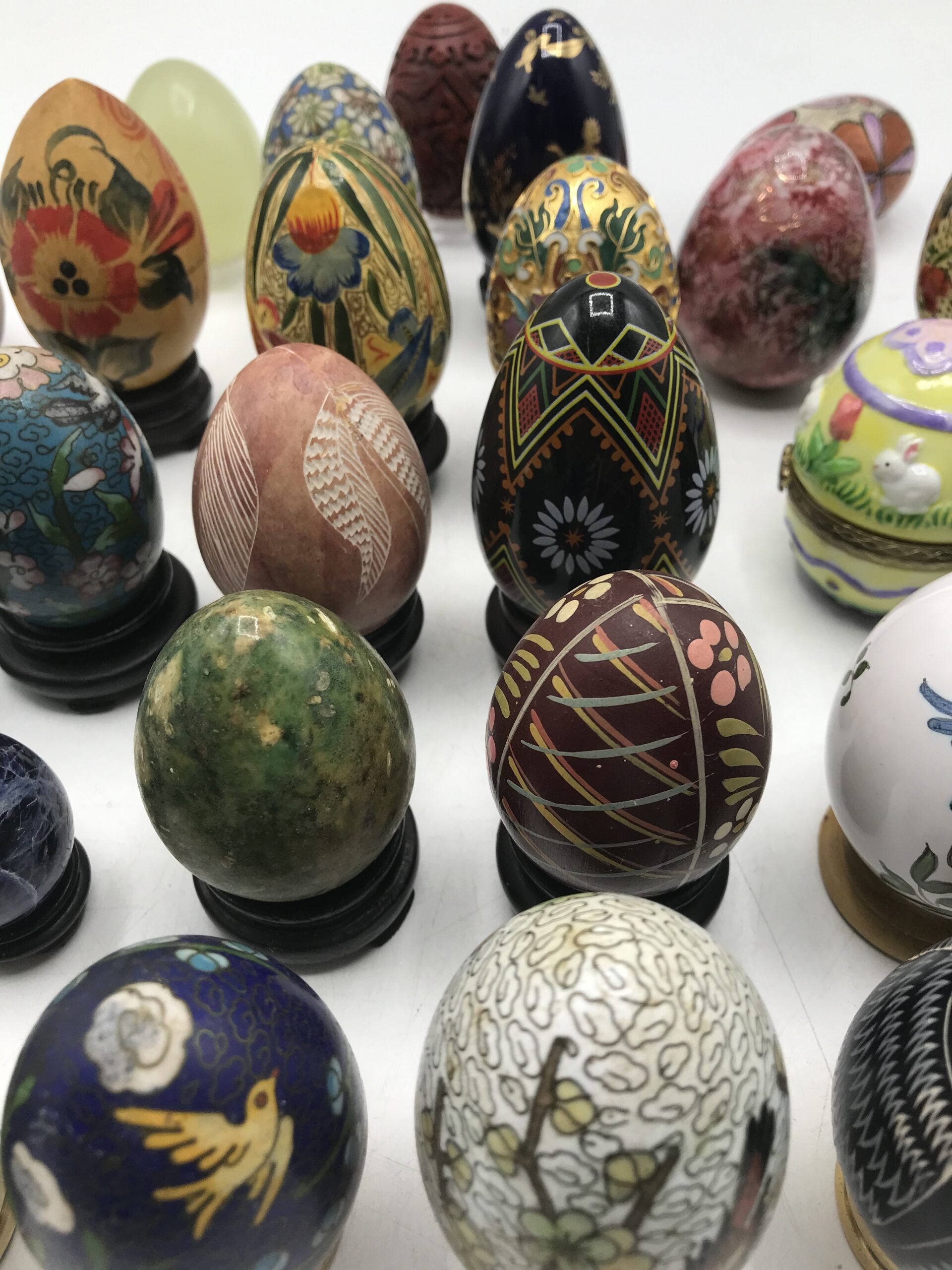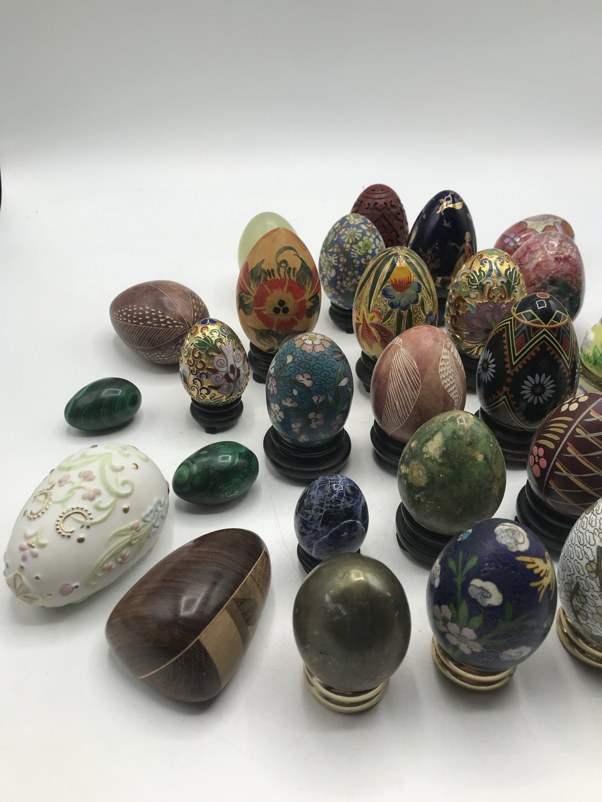 Une grosse collection d’œufs vient d’arriver cot cot cot. Avis aux collectionneurs !!!! J’ai fais plusieurs lots. Voici le lot numéro 1. Il est composé de 32 œufs. Les œufs sont de différente taille, de différente forme. On y retrouve des matières comme de la pierre, du bois, de la céramique. Un joli pèle mêle de ce qui peut exister. Le tout est en bon état. Une jolie idée de décoration qui peut apporter sa petite touche retro.