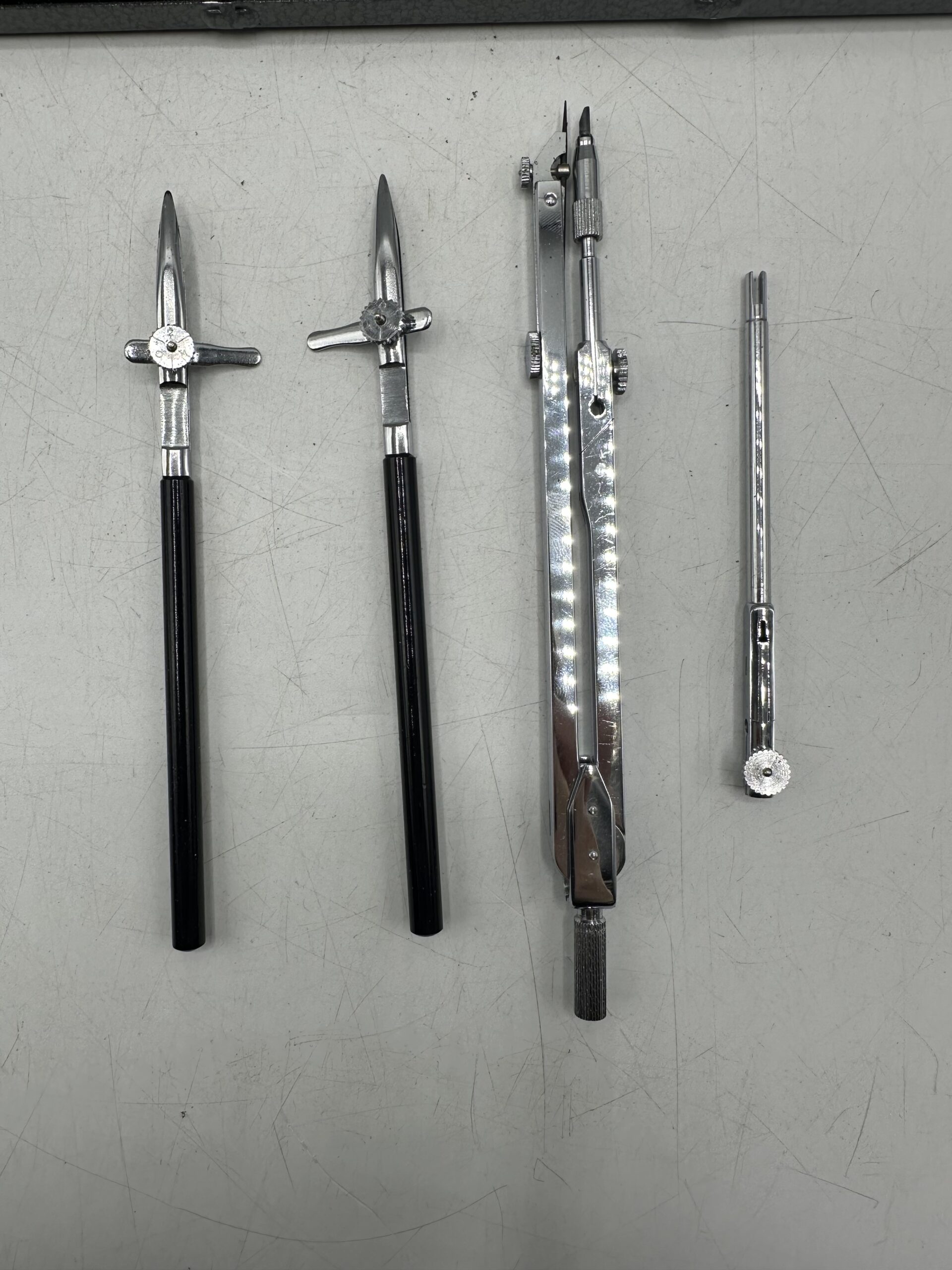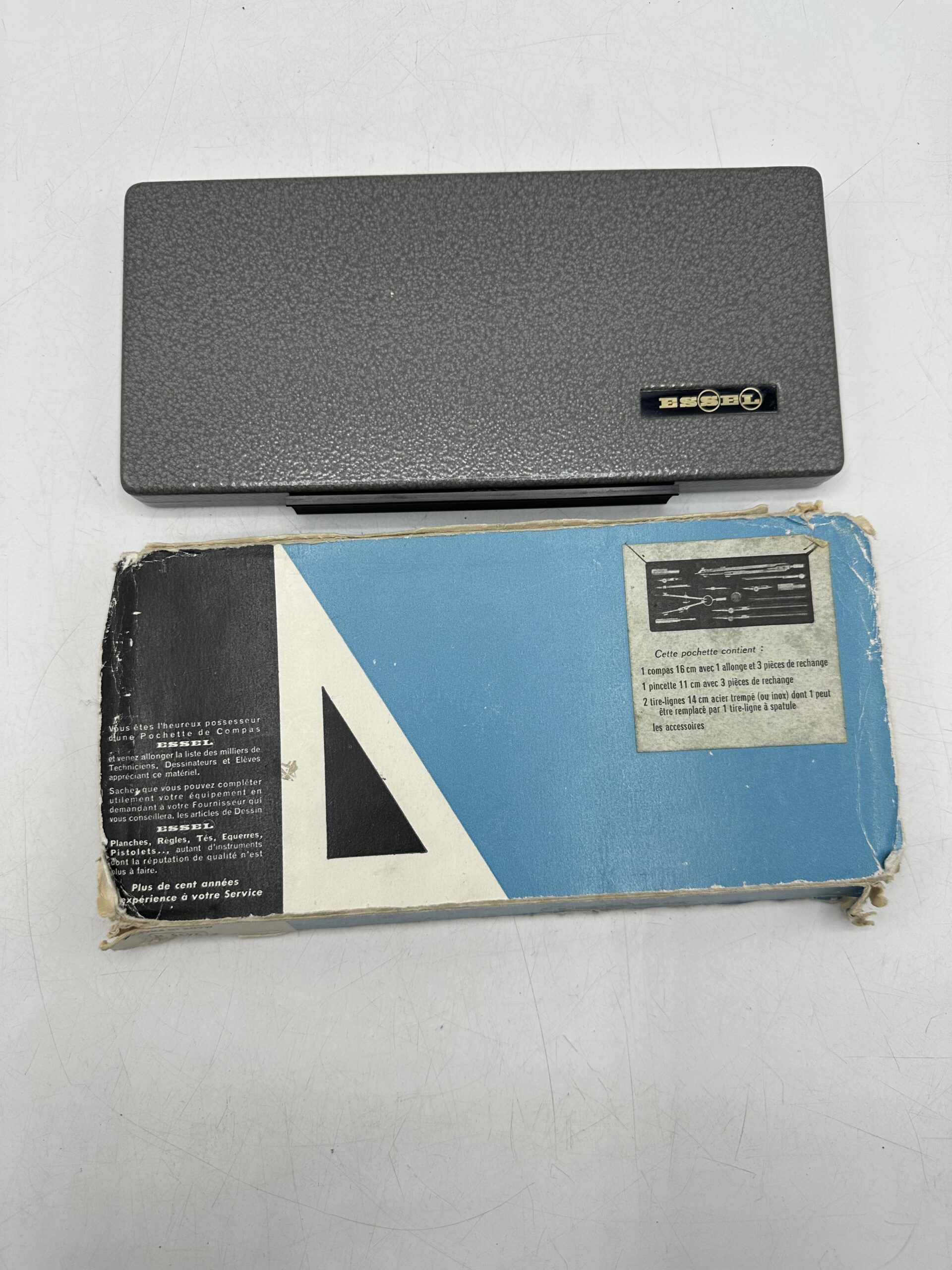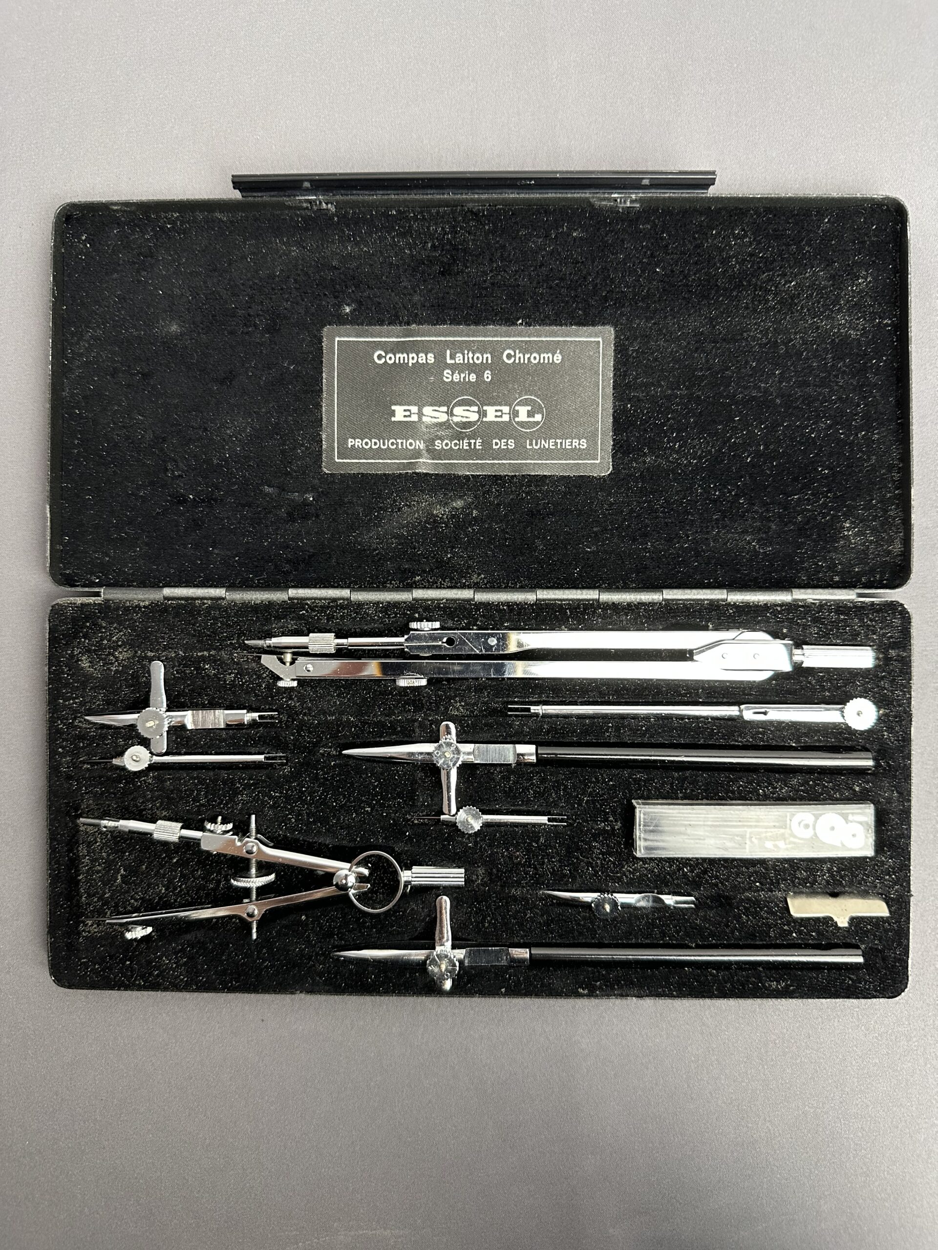 Pour vous les collectionneurs, les passionnés d’art et de géométrie, voici un magnifique coffret de Compas laiton chromé Essel.