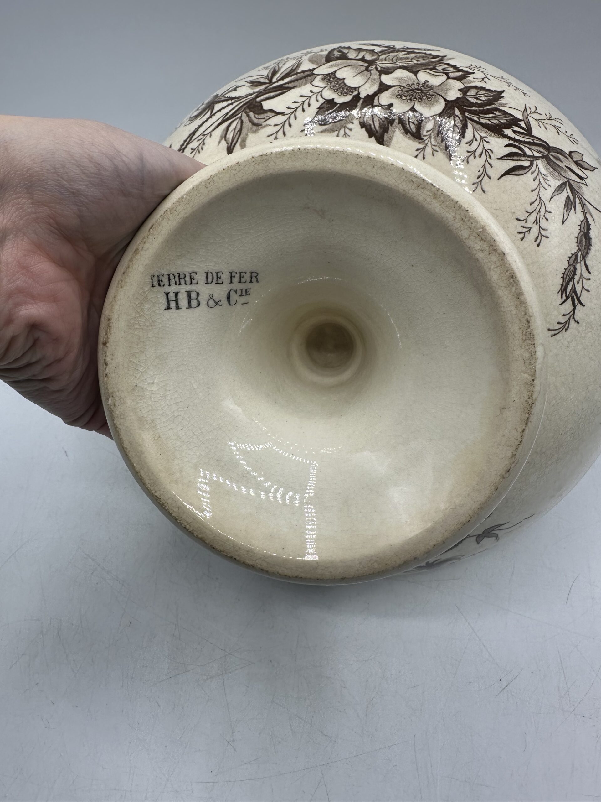 Chineurs, collectionneurs et amoureux de vaisselle ancienne, voici le magnifique Compotier Terre de fer HB & Cie.