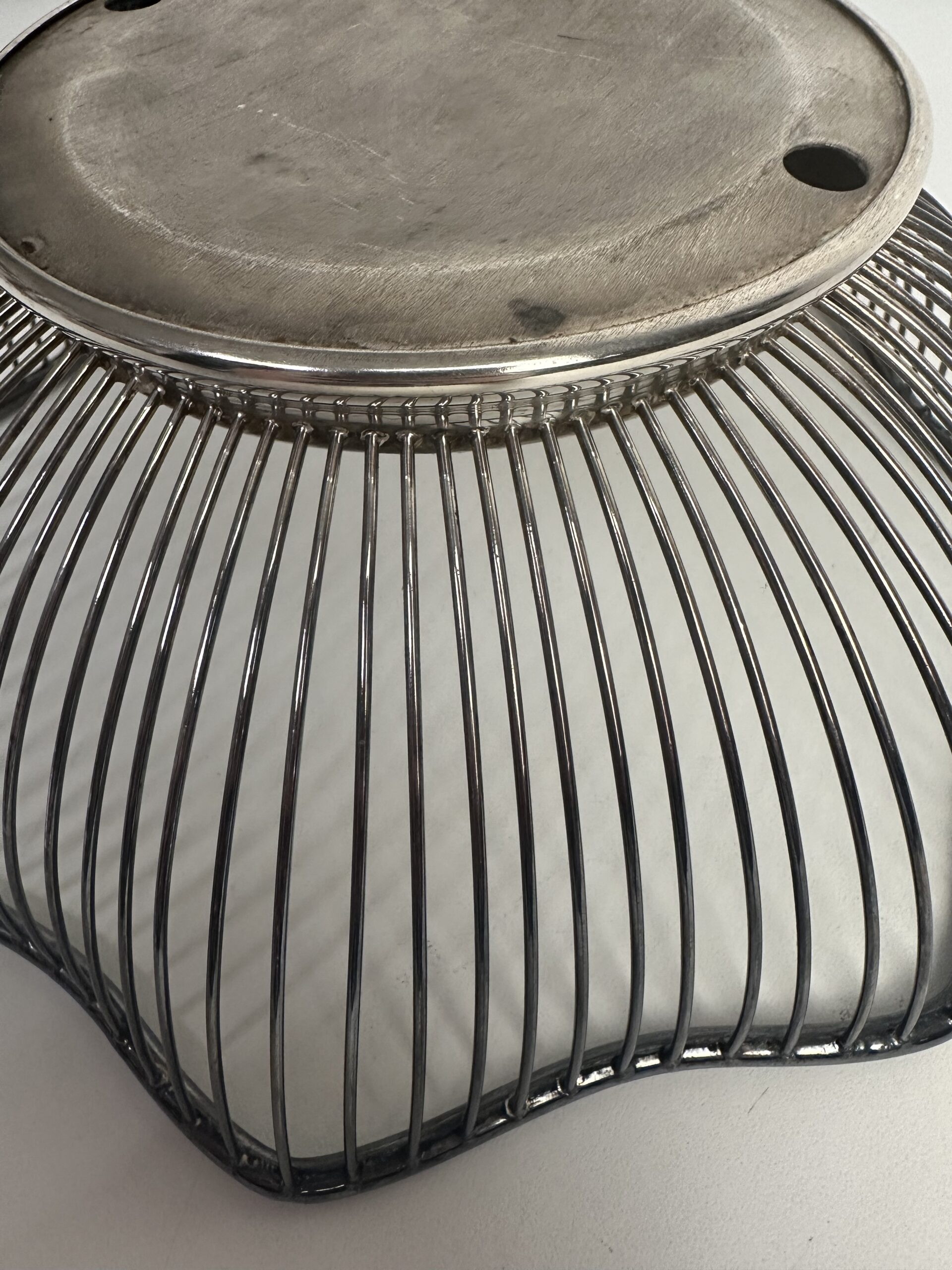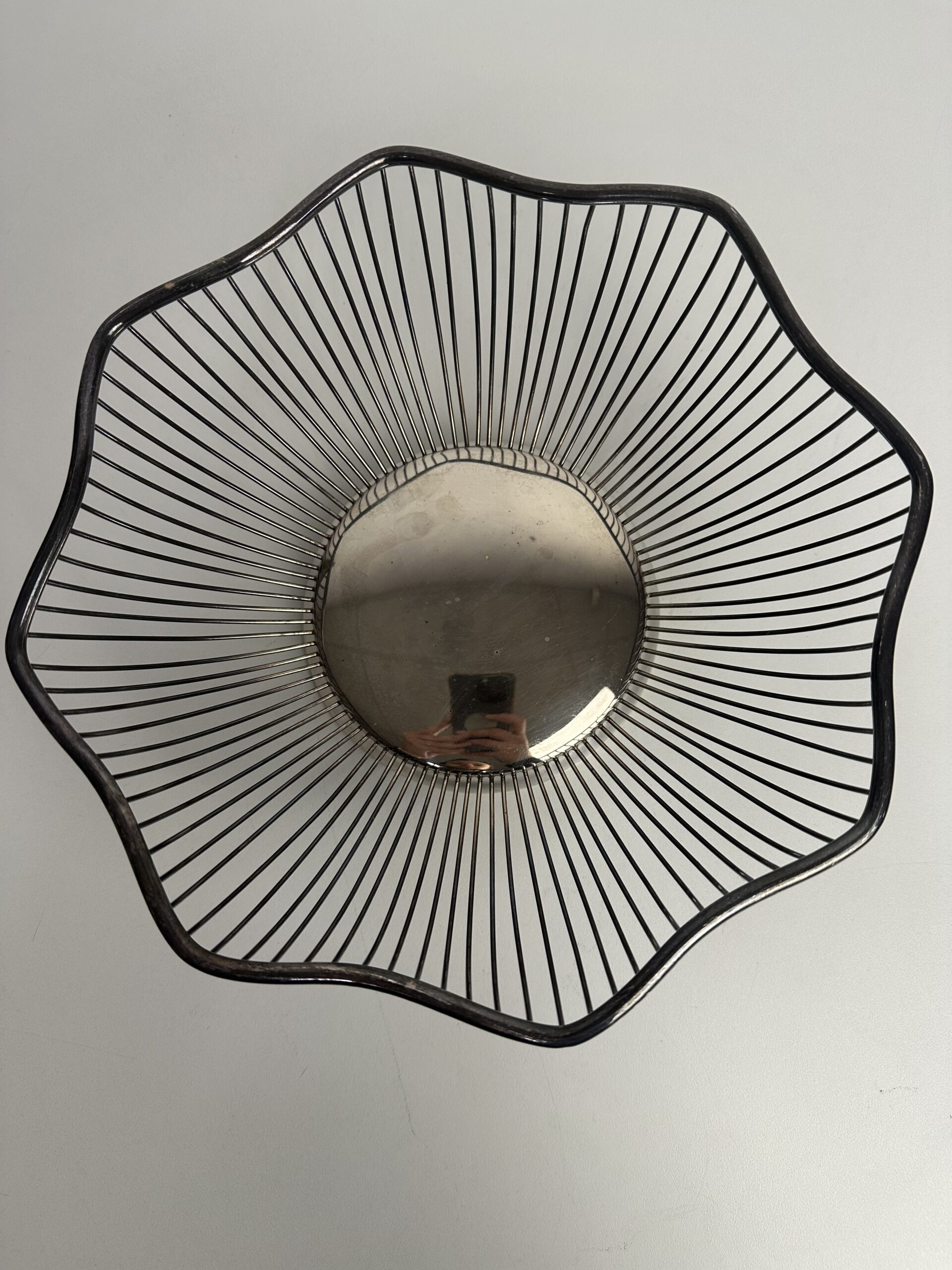 Pour les chineurs et amateurs de pièces chics et délicates, voici une Corbeille vintage métal argenté.