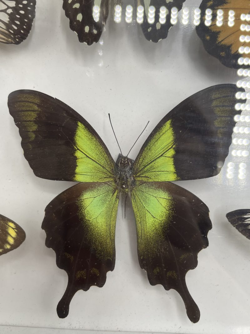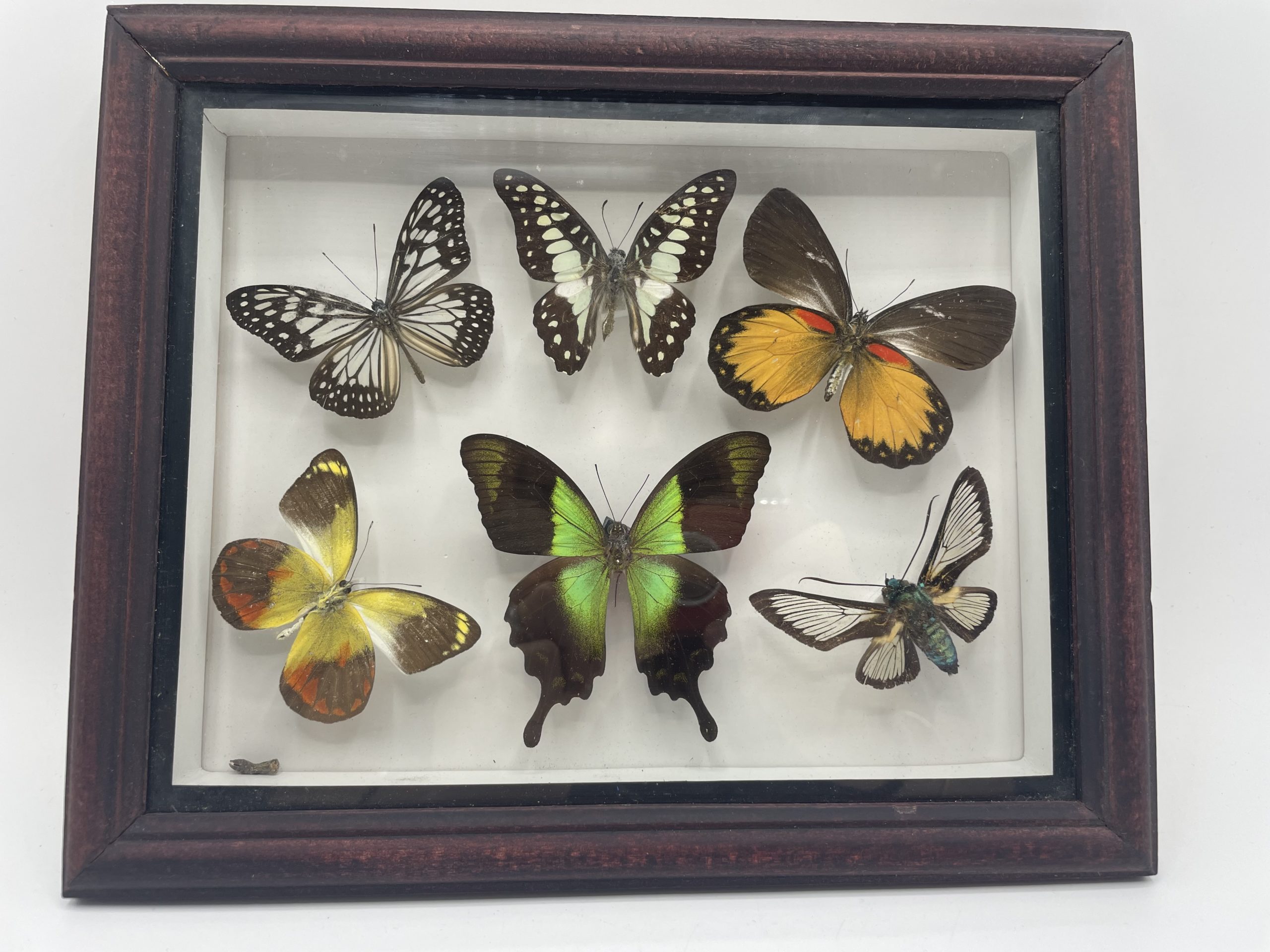 Collectionneurs, ce joli duo de cadres en bois sont des cadres de papillons naturalisés. Le cadre carré renferme un seul spécimen de papillon aux ailes bleues et noires, et le cadre rectangulaire renferme une collection de 6 papillons d’espèces et de couleurs différentes. En provenance du Butterfly Park de Bali, ces cadres en bois sont accompagnés de certificats collés à l’arrière attestant que les papillons épinglés dans les cadres ne sont pas des espèces en danger ou protégées. Un joli du pour votre cabinet de curiosités ou pour une décoration à l’esprit jungle, safari et expédition.