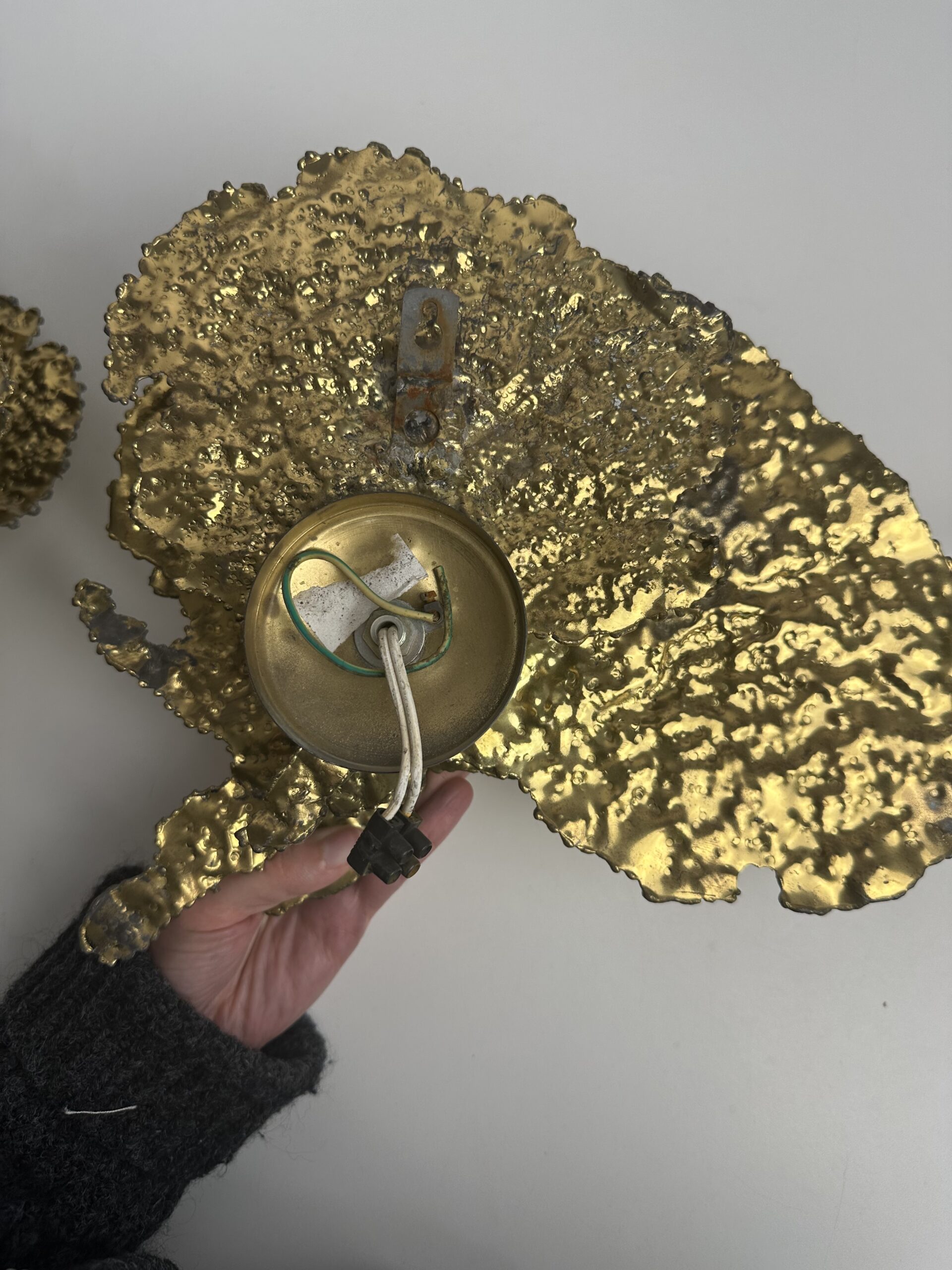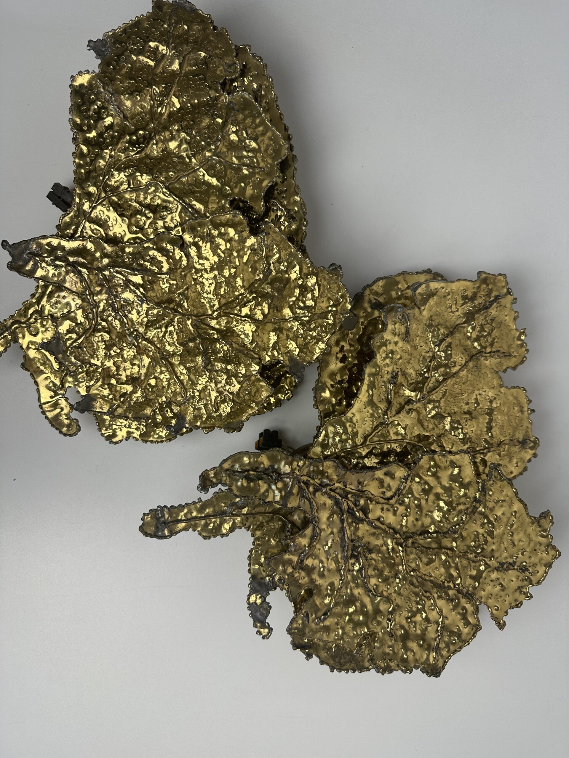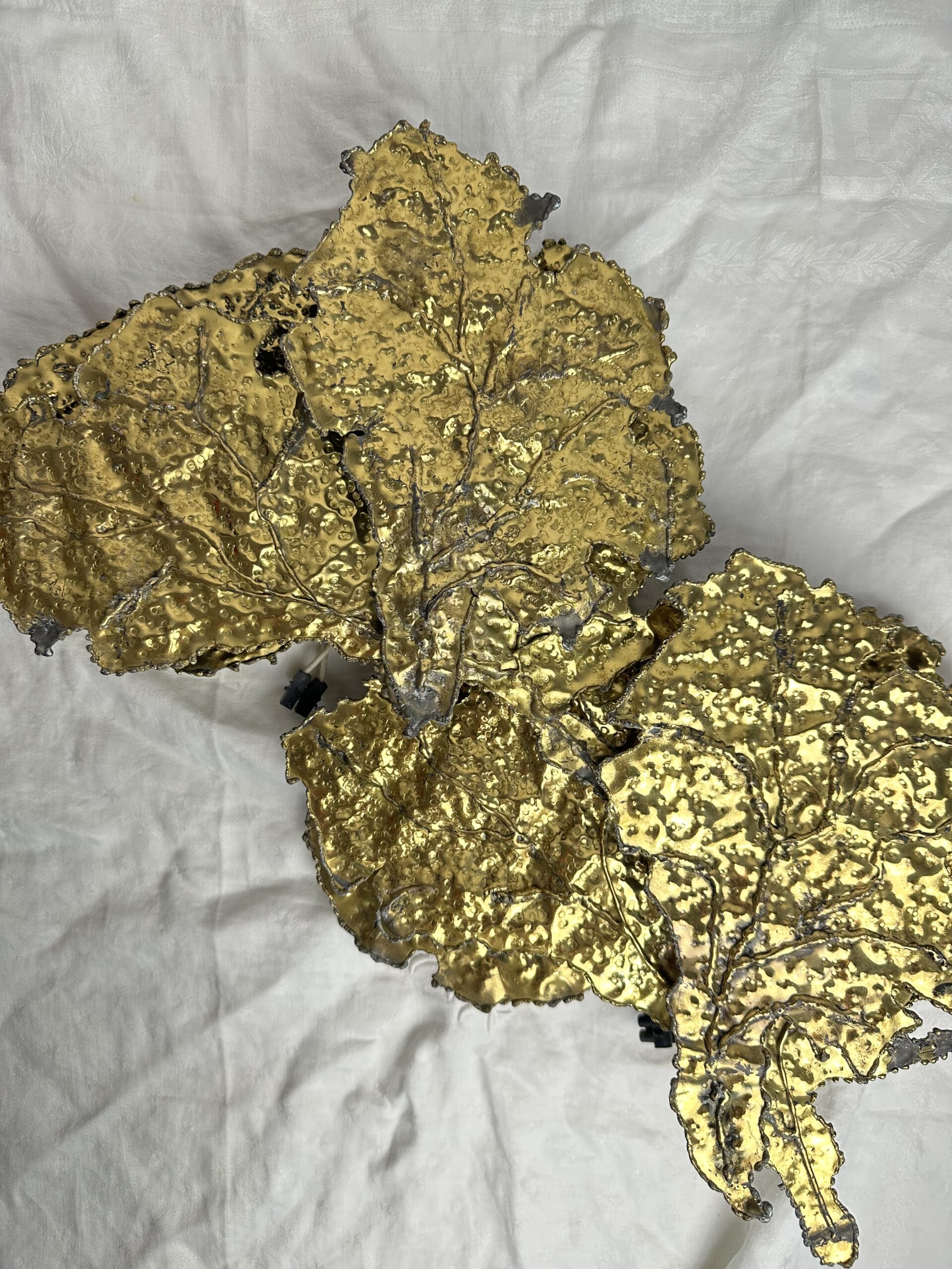 Alerte pépite ! Si vous aimez les pièces uniques, ce duo d’appliques murales en forme de feuilles dorées est fait pour vous.