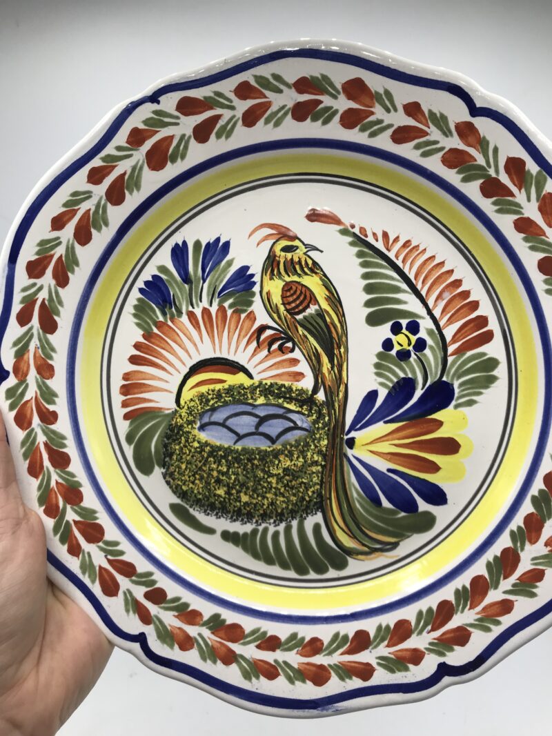 Alerte pépite !!! Duo de 2 assiettes Henriot Quimper France. Pour les amateurs de belles assiettes de collection, pour la décoration ou pour embellir vos tables. Ces assiettes sont dans un très bon état. La première à un diamètre de 25 cm pour une hauteur de 3,5 cm. Elle représente un oiseau posé sur son nid, à l’arrière est noté Henriot Quimper. La deuxième à un diamètre de 25,5 cm pour une hauteur de 3,5 cm. Elle représente un magnifique bouquet de fleurs, à l’arrière est noté HB Quimper France. Amoureux de la Bretagne elles sont pour vous.