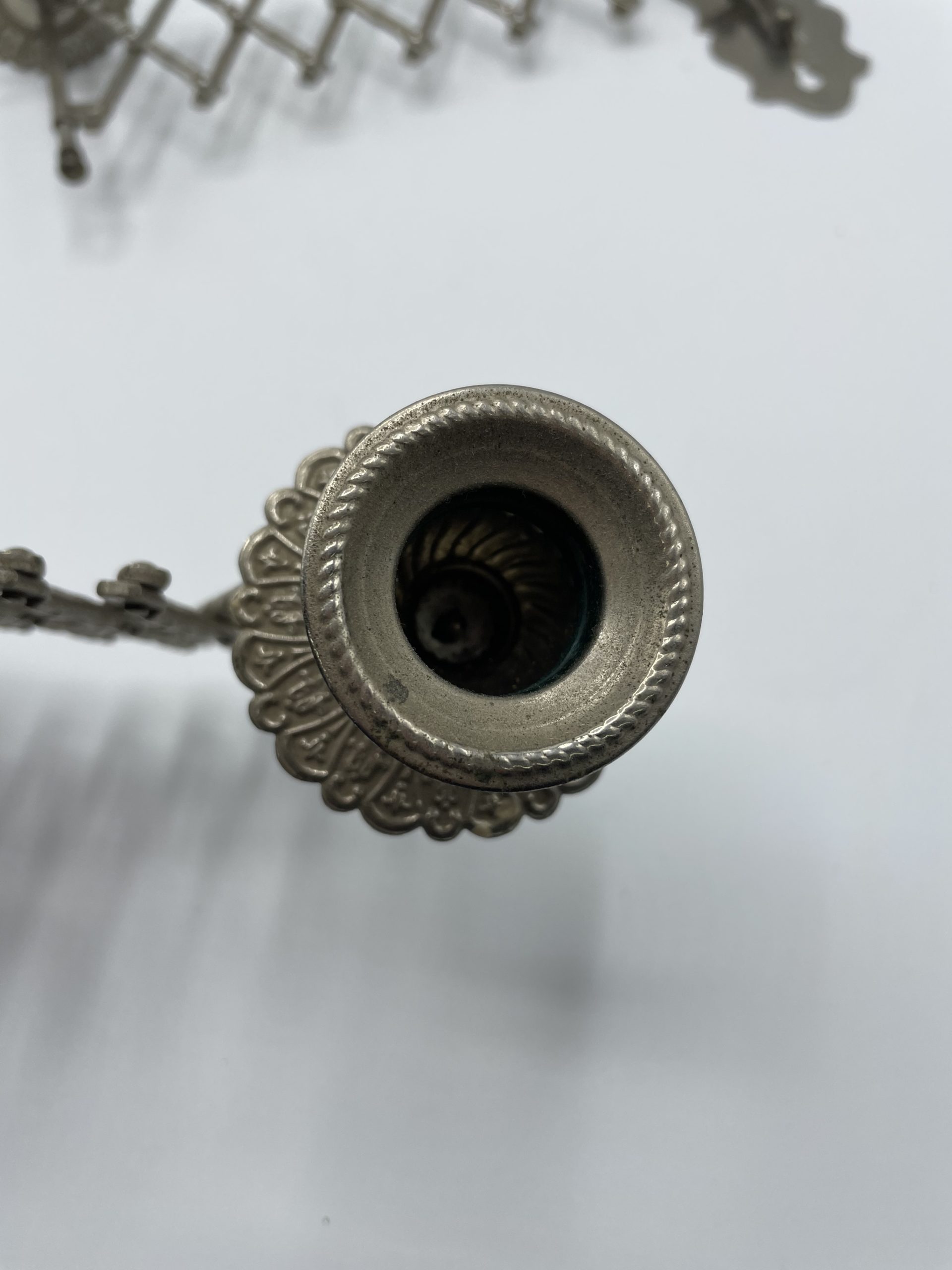 Ces appliques murales originales sont en réalité des bougeoirs mural dits « de piano ». On es trouvait autrefois fixés sur les pianos pour éclairer les touches et les partitions. En métal, ces bougeoirs sont pivotants et ils peuvent être réglés de différentes façons grâce à leur système en accordéon qui permet de les ouvrir à la distance souhaitée. Vintage, quelques traces d’usure sont à prévoir (cf photos) jolies marques du temps passé. Une jolie paire à accrocher contre un mur, un meuble ou un piano pour une ambiance élégante et rétro.