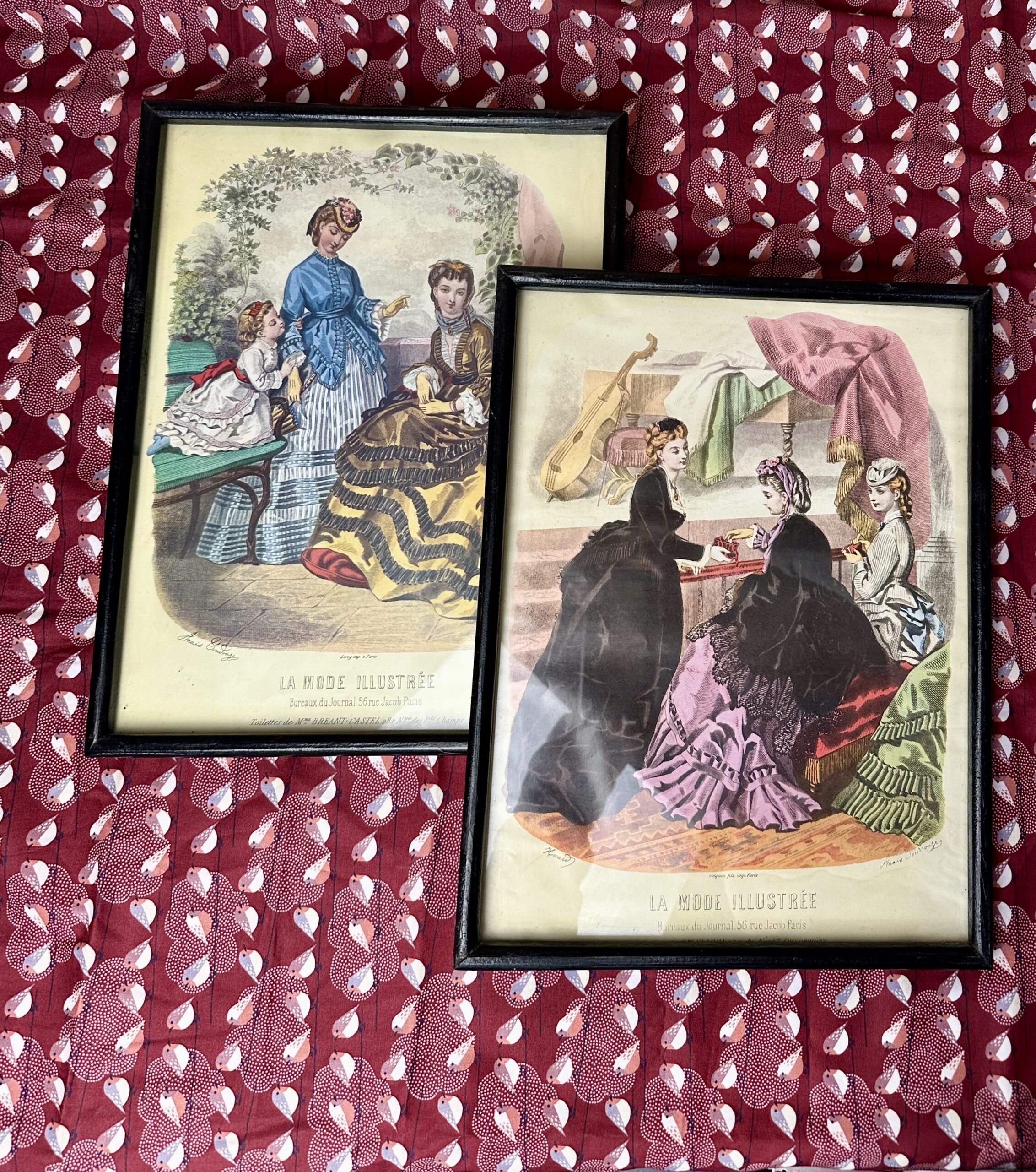 Amis chineurs et brocanteurs, passionnés de mode, à la recherche d’anciennes gravures de mode ! Joli duo de cadres anciens La Mode Illustrée signé Anais Toudouze vers 1870.