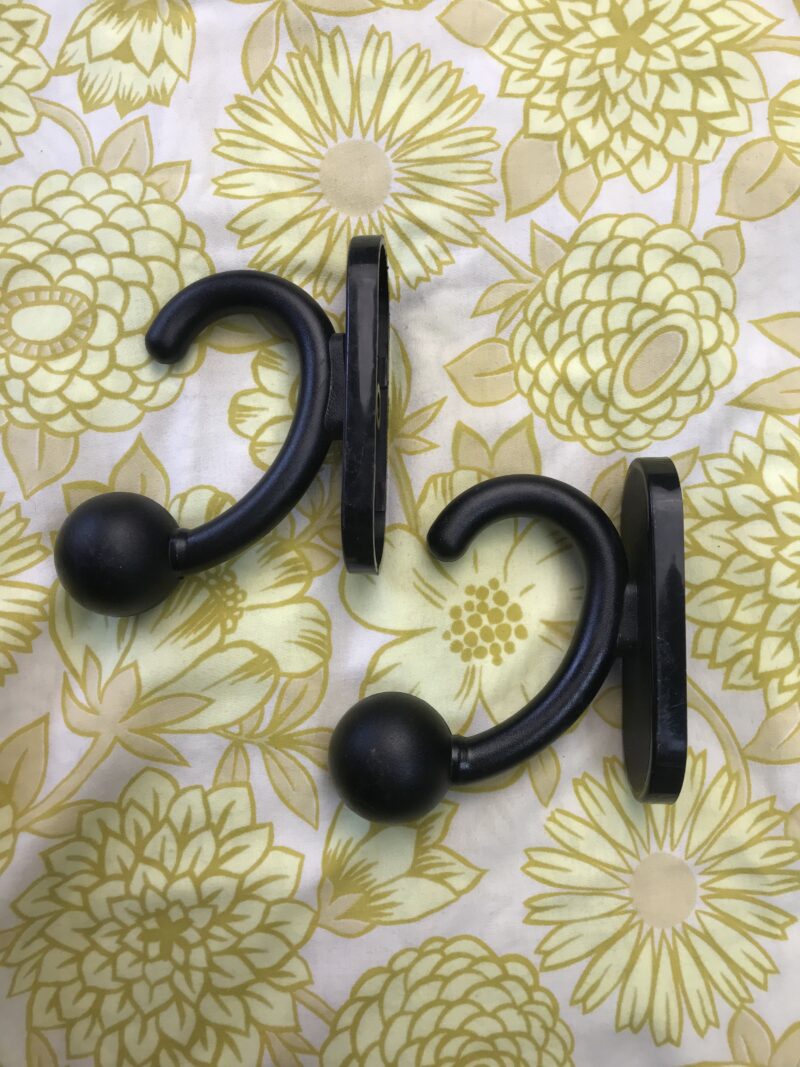 Alerte pépite!!!! Voici un duo de choc, deux patères de couleur noire, elles sont en matière plastique. De la marque CON&CON made in Italy, elles sont en bon état. En forme de virgule, avec une boule au bout, elles ne manquent pas de style. Prêtes pour une seconde vie!!! Avec ses patères vous apporterez une touche vintage à votre décoration, aussi bien dans votre chambre, salon, ou cuisine. Effet garanti.