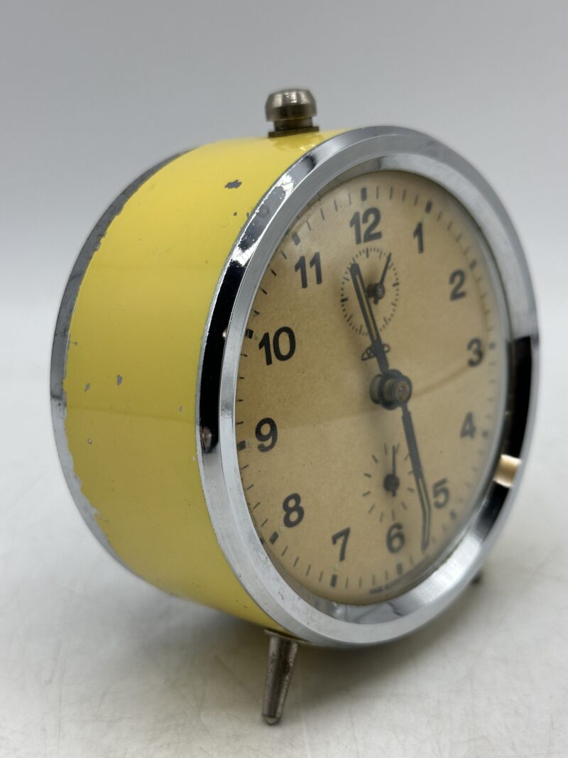 Le second, un réveil Prim jaune vers 1960, apporte une touche de chaleur et de gaieté rétro à votre intérieur.
