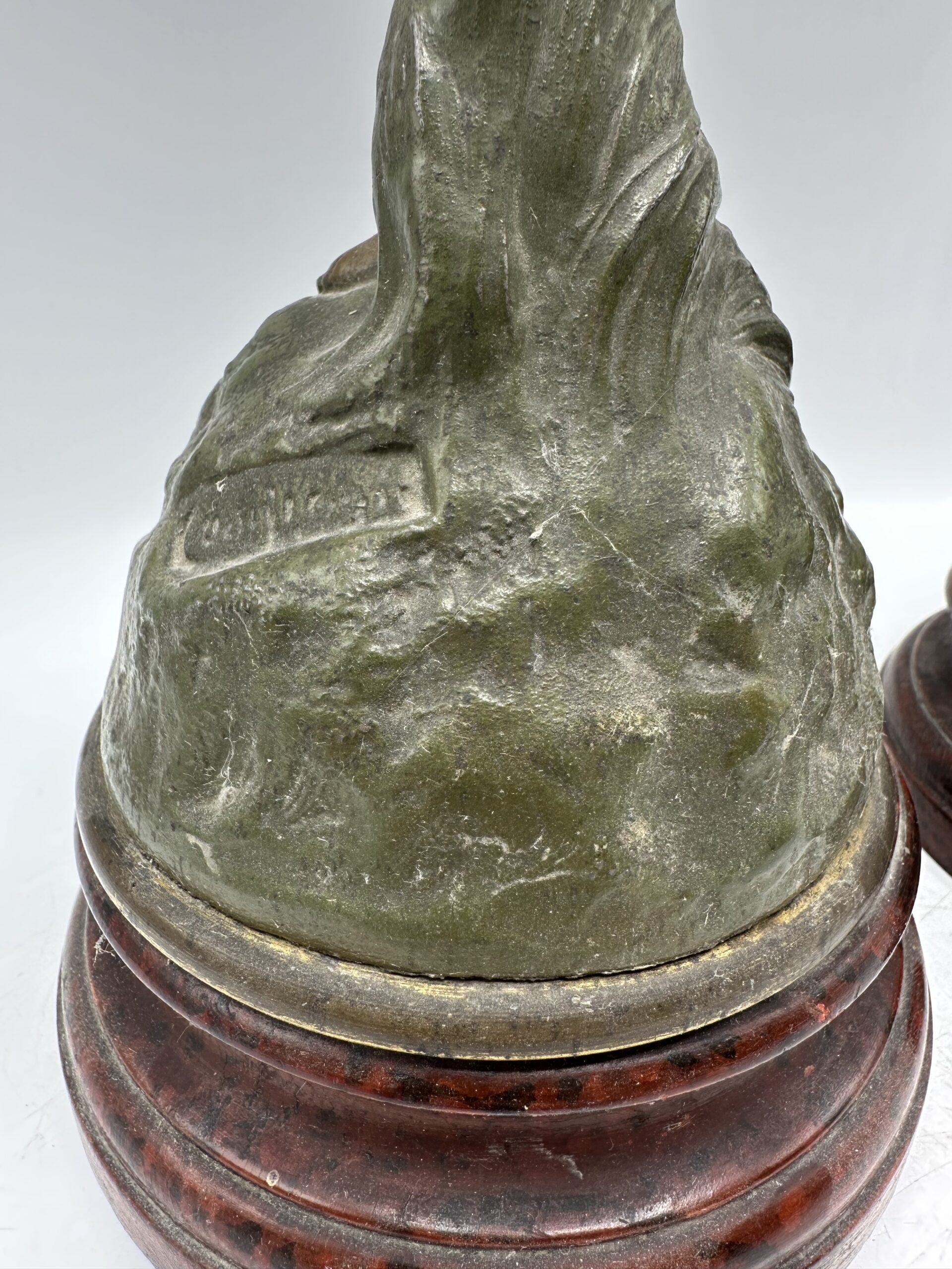 Les deux statues sont en bon état. Il n’y a pas de casse ni de manques. Elles bougent un petit peu sur le socle et des petites traces d’usures sont visibles.