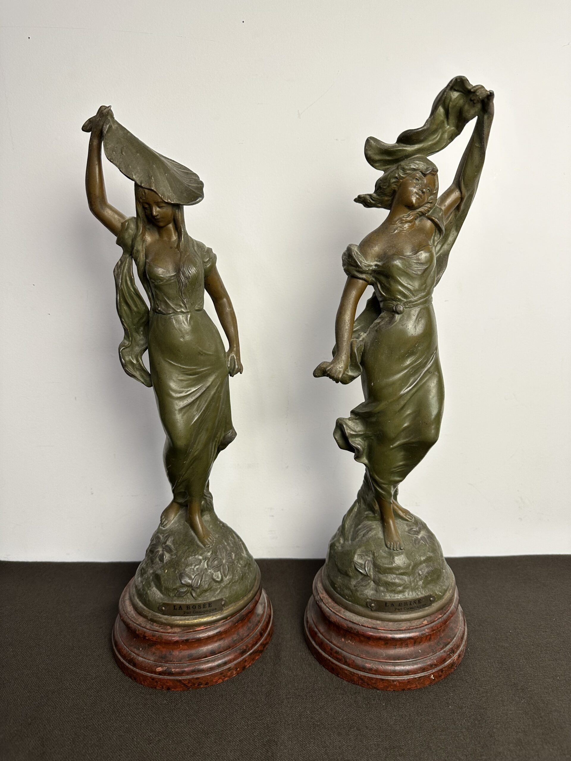 Amateurs d’art et de belles statues anciennes. Voici un Duo de statues La Rosée et La Brise par Campagne.