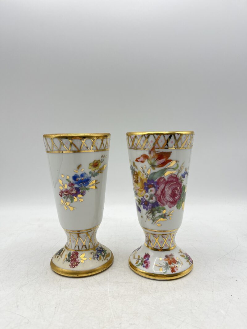 Magnifique duo de 2 mazagrans vintage en porcelaine de Limoges, peints à la main. Avec leur couleur blanche, les jolis motifs floraux mêlés aux liserés dorés peints à la main ressortent parfaitement. Ces mazagrans vintage présentent des traces d’usures, (cf photos), marques du temps passé. Un joli duo parfait lors du café du matin ou pour pour servi de coupe pour une glace , ils seront aussi parfait en tant qu’éléments décoratifs vintage d’un autre temps.