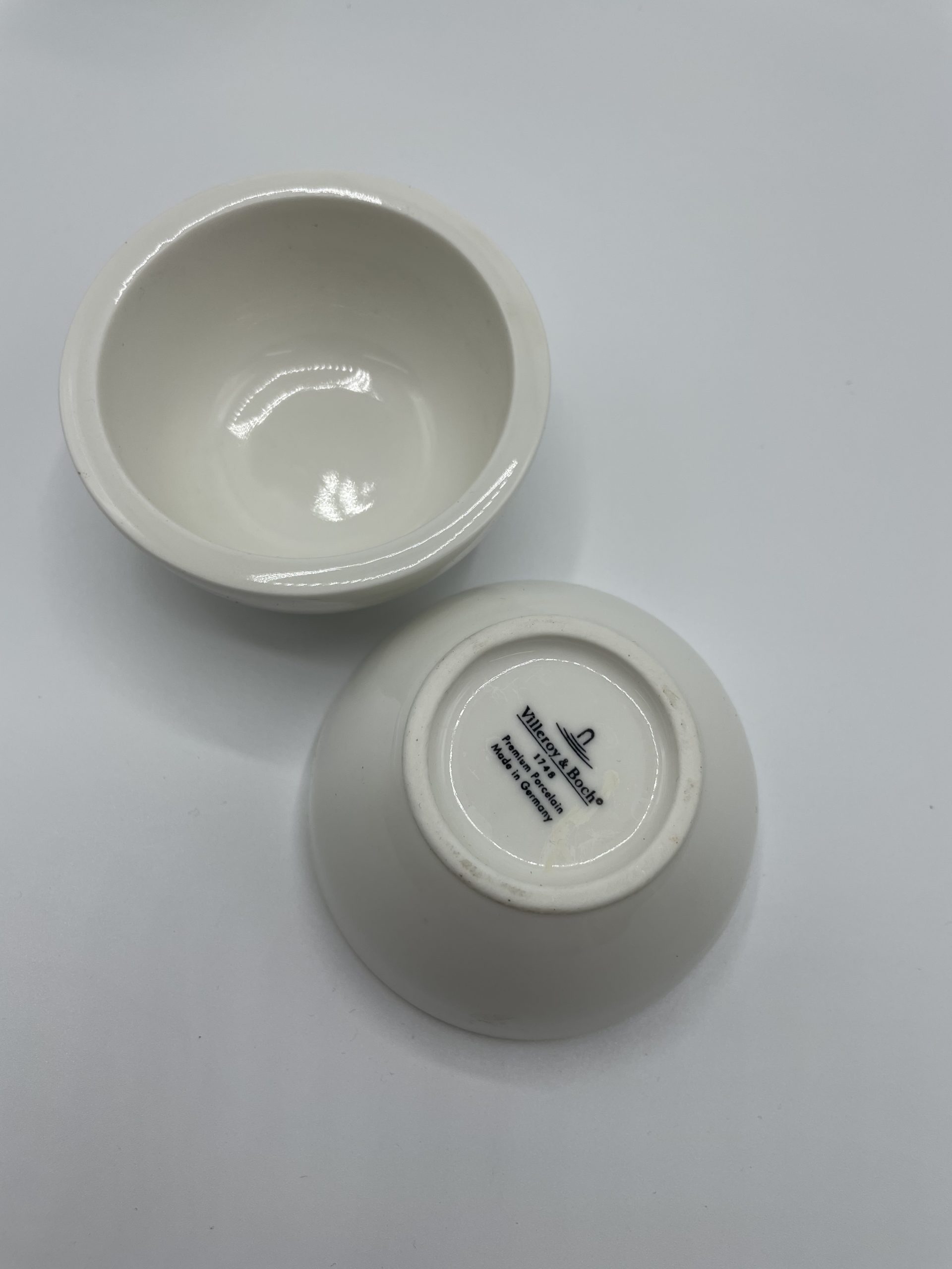 Ce bel ensemble de 5 pièces est composé d’1 huilier, de 2 petits ramequins, d’1 flacon à épices ou à herbes et d’1 flacon en porcelaine blanche. Estampillé Villeroy & Boch, ce bel ensemble pour assaisonnement est à la fois très élégant et intemporel. Les bouteilles et flacons ont un joli bouchon en liège. Idéal pour assaisonner vos plats, cet ensemble Villeroy & Boch fera une belle impression sur une jolie table, un îlot de cuisine ou sur un beau plan de travail.