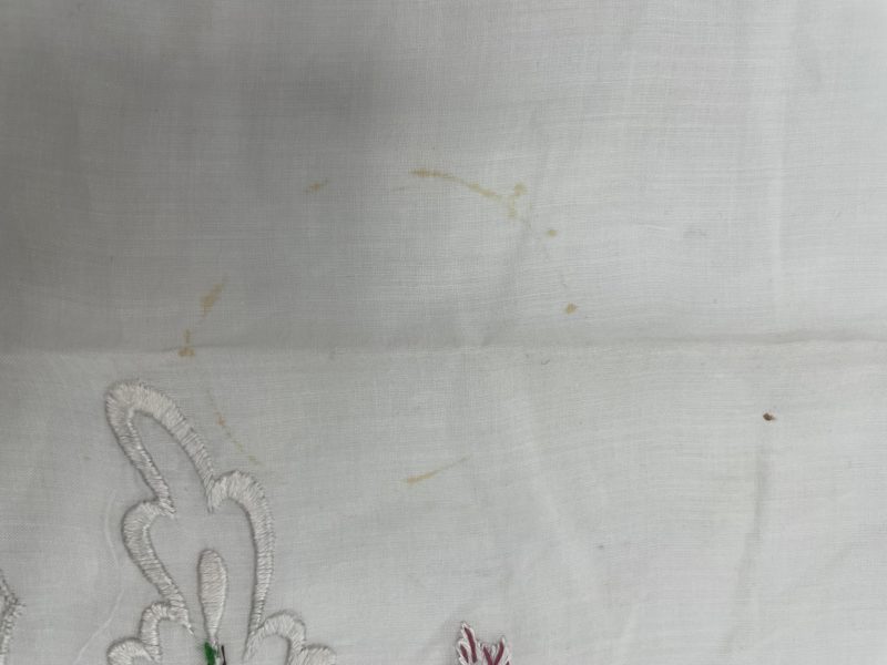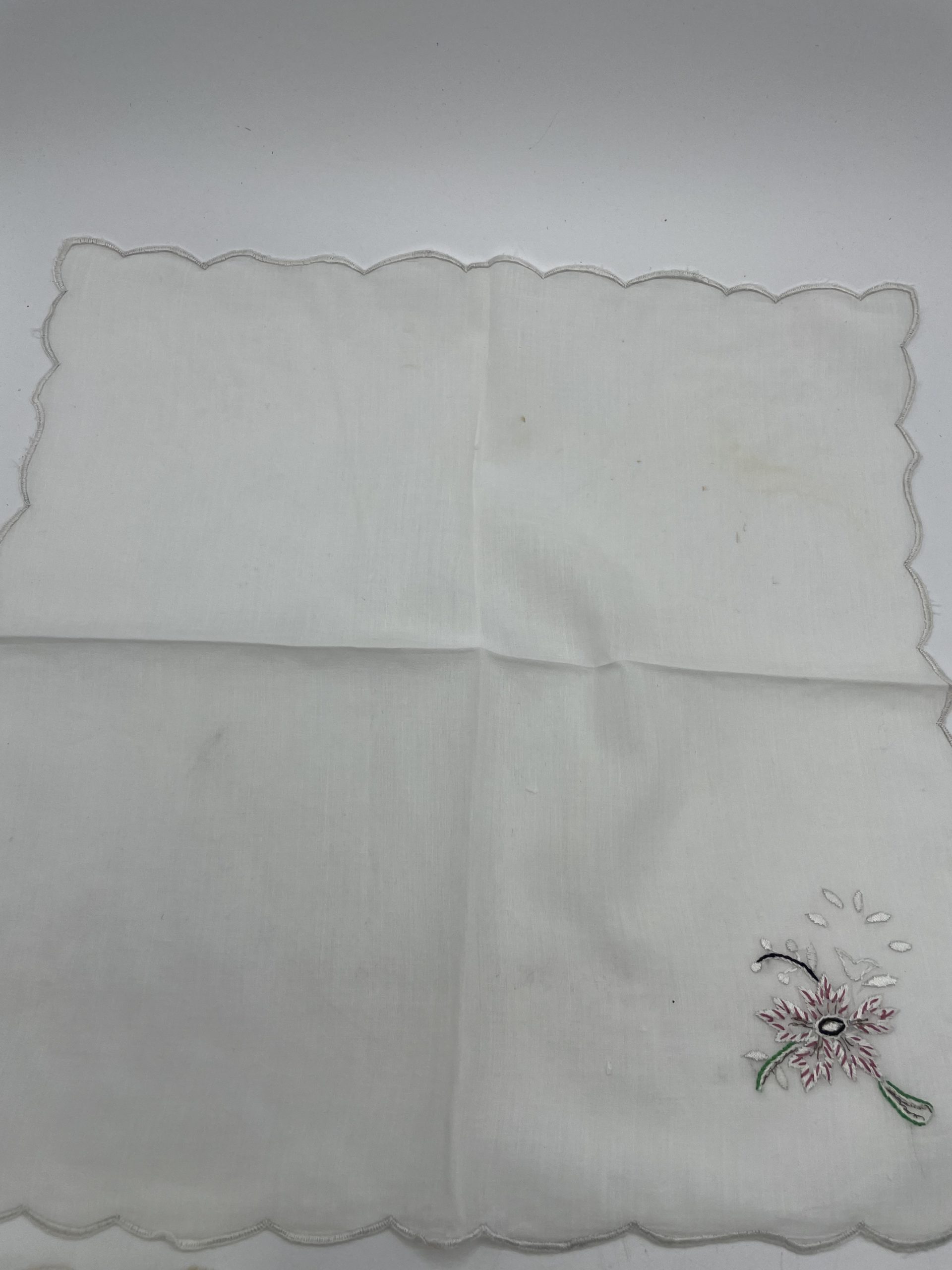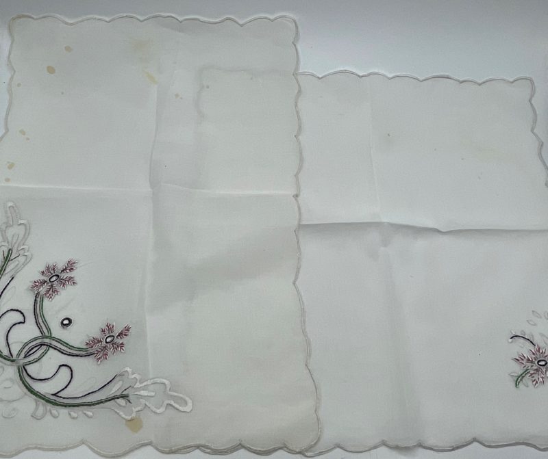 On adore ce magnifique set qui se compose de7 napperons rectangulaires et de 6 napperons carrés assortis. En voile brodé, les napperons sont brodés de motifs de fleurs de couleur rouges, blanches, vertes, brunes et noires. Les napperons ont une jolie forme de collerette qui vient rajouter de la douceur et de l’élégance. Vintage, des traces d’usure et des petites tâches sont à prévoir (cf photos) jolies marques du temps passé. Magnifique !