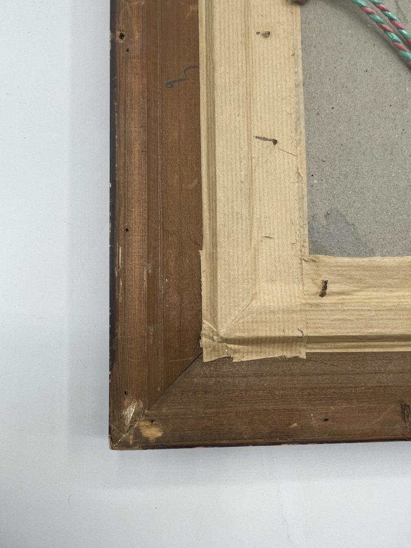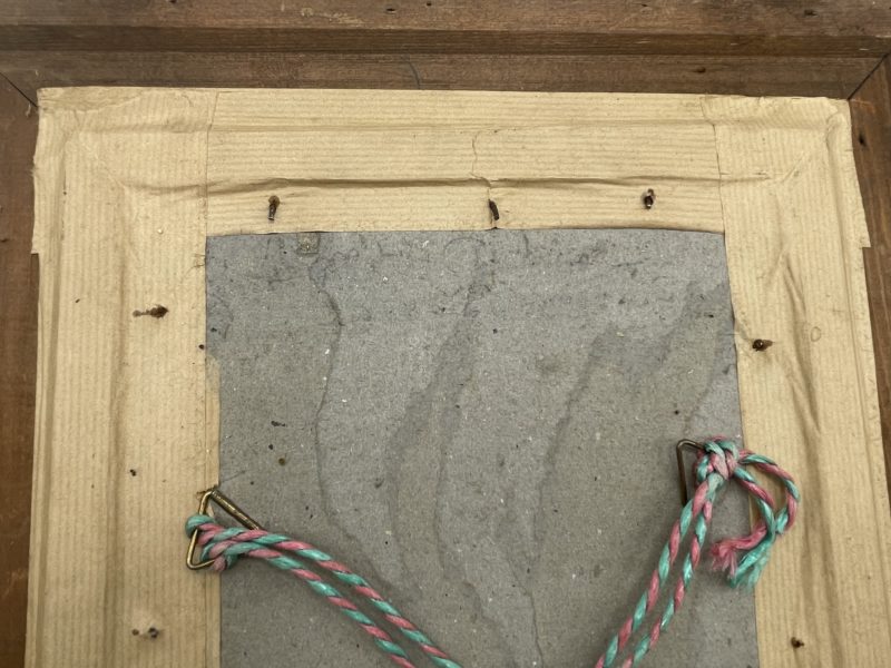 Amateurs d’art et curieux, ce tableau est en réalité une étude réalisée au fusain dans le cadre de travaux d’école d’art. Le modèle représente une femme nue qui pose un genou à terre et tient ses deux bras en ‘air comme si elle s’apprêtait à faire une offrande à un dieu. Sur l’étude on peut lire l’annotation « Plus long » près de la cuisse droite du modèle ainsi qu’une autre inscription illisible à coté du mollet gauche. L’étude est signée des initiales VT et porte une inscription au fusain en-dessous coupée par le cadre. L’étude est encadrée dans une cadre en bois massif de couleur brun foncé et rehaussée d’un frise dorée gravée dans le bois. Vintage, des traces d’usure sont à prévoir (cf photos) jolies marques du temps passé. Un beau tableau à collectionner !