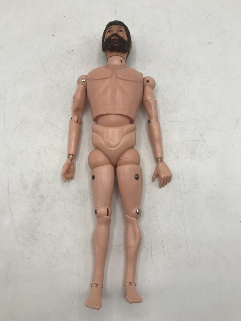 Alerte pépite !!! Figurine GI Joe LJ-218 de 1964. Alors là j’en avais jamais eu de si ancienne entre les mains. Voici donc une figurine du célèbre GI JOE de 1964 de chez Hasbro. Il est daté à l’arrière du dos. Ce monsieur a des cheveux et une barbe, légèrement clairsemés avec le temps mais qui tiennent la route. Il est accompagné de vêtements. Nous avons 5 vestes et pulls, une combinaison, 5 pantalons. 5 paires de chaussures et deux sacoches. Et la tenue complète de l’homme qui valait six million de dollars. A noter que les tenus ont des trous ou déchirures ils faudra un peu de couture pour les remettre en état. Un super lot ancien pour les collectionneurs de poupées et figurines vintage.