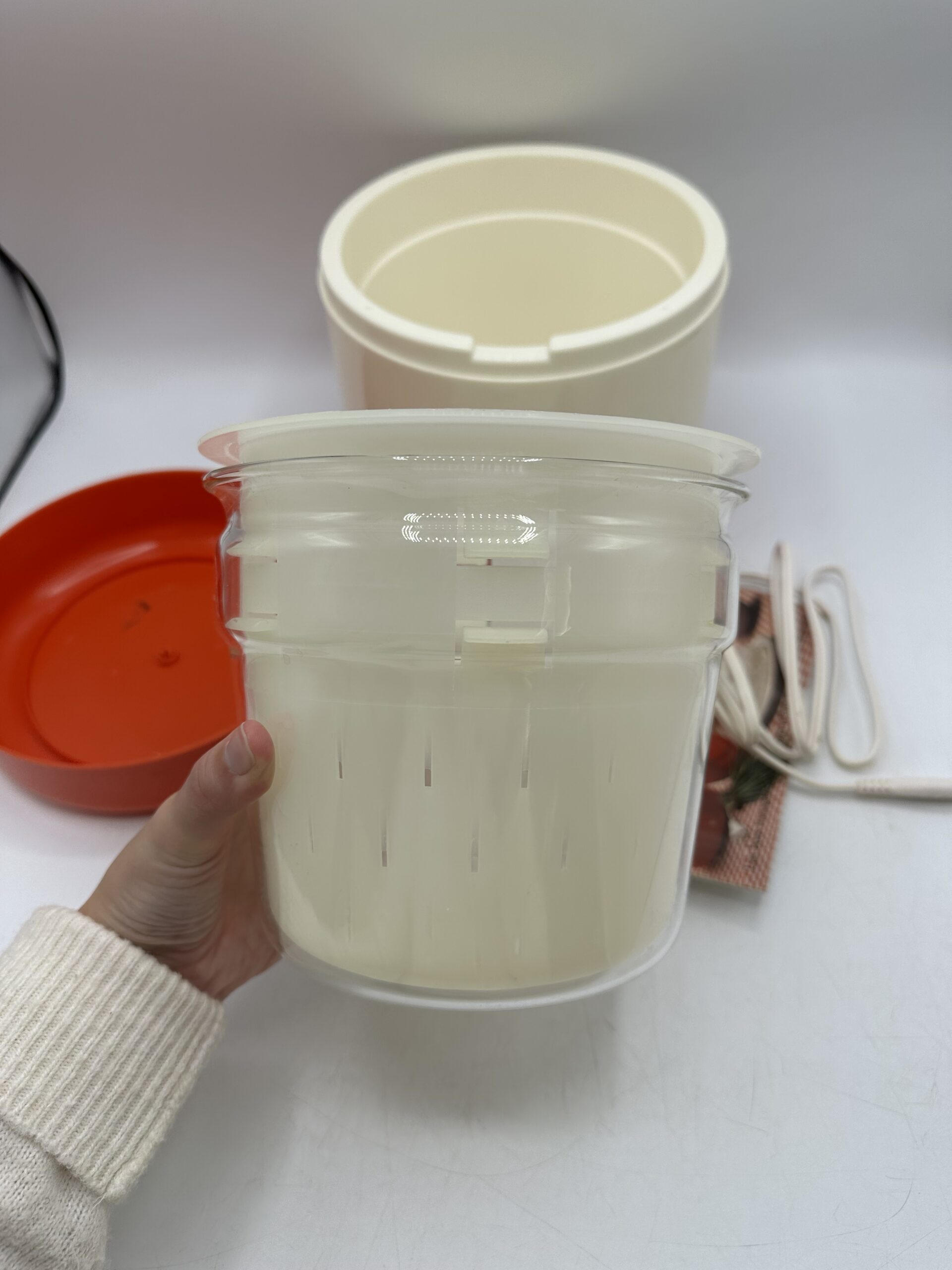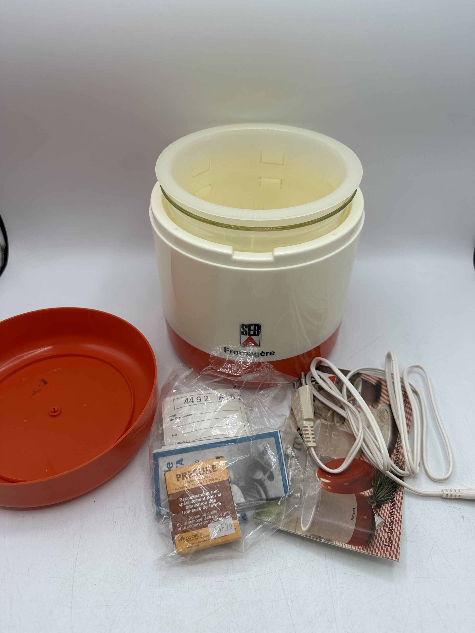 Fabriquée par SEB, marque emblématique de l’électroménager français, cette fromagère permet de réaliser soi-même de délicieux fromages blancs maison. Son look rétro et sa robustesse en font à la fois un objet de collection et un appareil fonctionnel, parfait pour les amateurs de bonne cuisine traditionnelle et de beaux objets vintage.