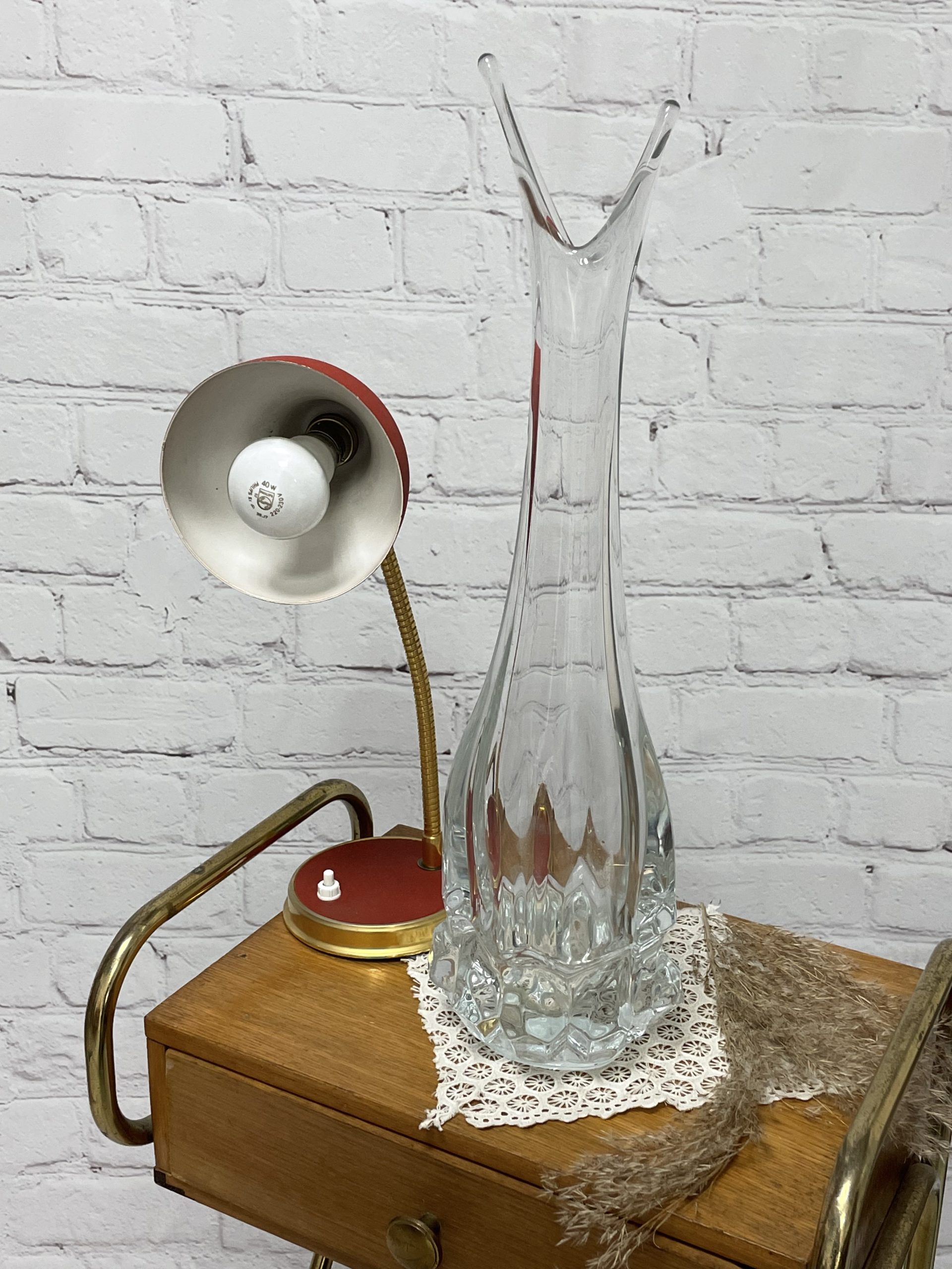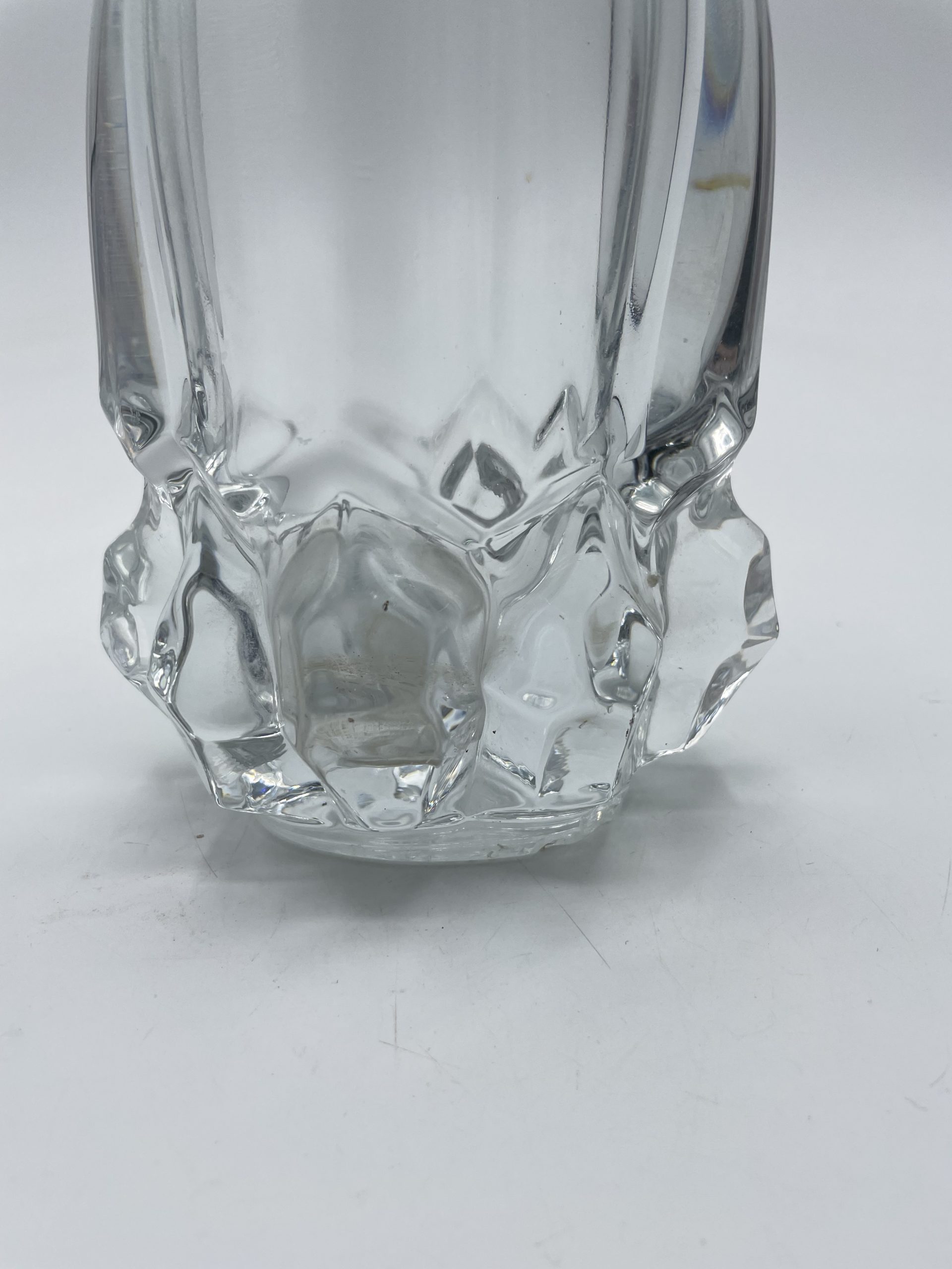 Ce sublime vase est en cristal soufflé et il est marqué Vannes Art France. De grande taille, le vase se termine par une bouche très stylisé qui apporte de la légèreté malgré la taille du vase. La base a été réalisée pour donner un effet de roche taillée. Vintage des années 50/60, le vase présente quelques rayures et traces d’usure (cf photos) jolies marques du temps passé. Un sublime vase à la fois élégant et intemporel !