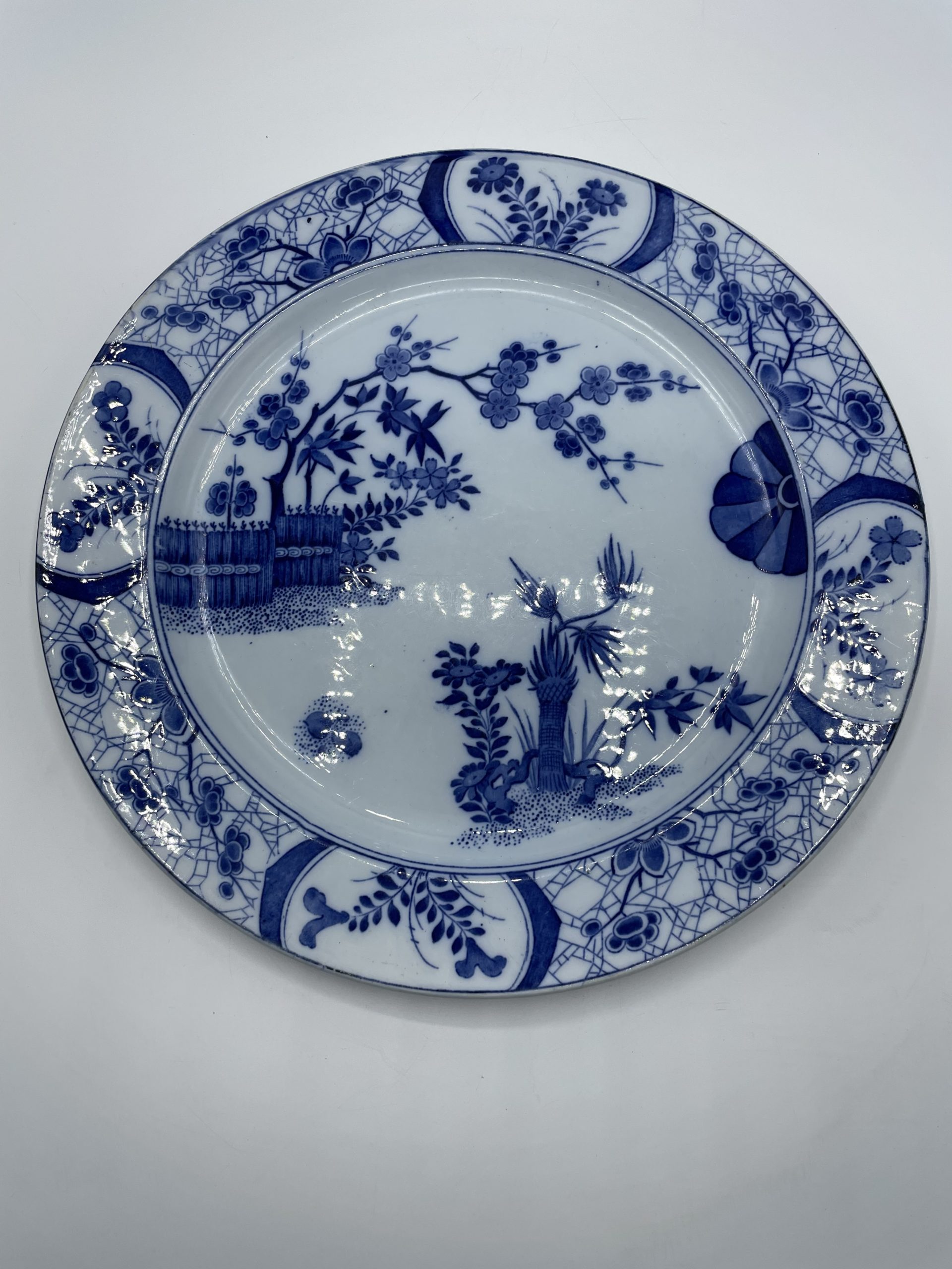 Cette jolie assiette décorative vintage est un objet artisanal décoré à la main et c’est donc un objet unique. Estampillé Creil Montereau, cette assiette de couleur bleue est décorée avec le motif déposé Japon qui représente des fleurs de cerisiers, des bambous et d’autres fleurs dans un esprit asiatique. Vintage,quelques traces sont à prévoir (cf photos) jolies marques du temps passé. Une très jolie assiette vintage de collection qui vous transportera au pays du soleil levant !