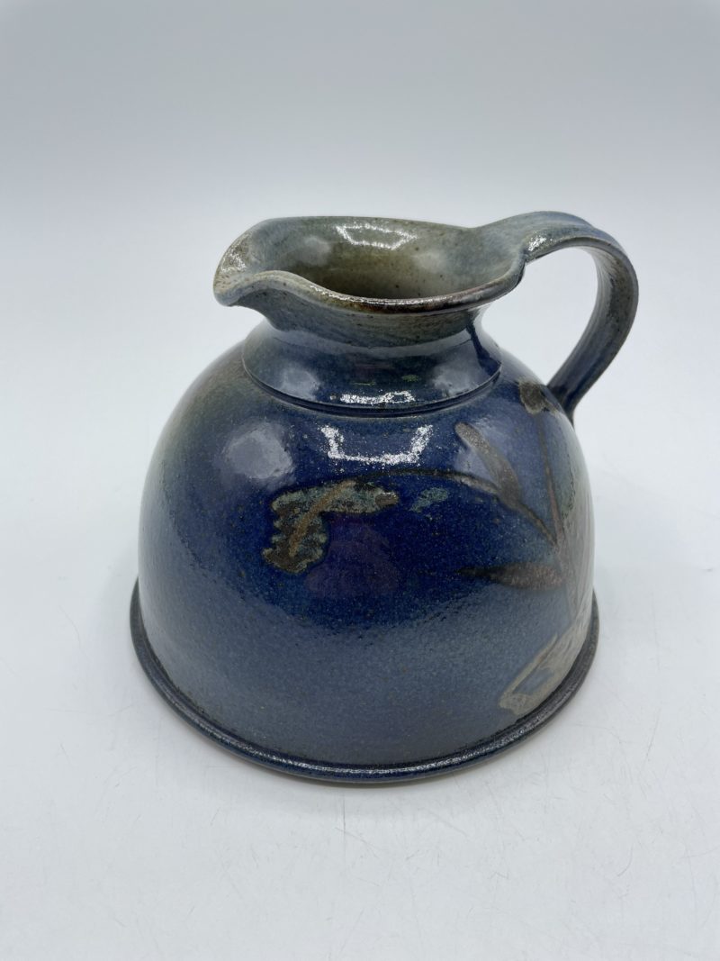 Cette jolie cruche vintage est en grès vernissé. D’une jolie couleur bleu gris, elle est décorée d’un motif de fleurs qui font penser à des roseaux. De fabrication artisanale, la cruche est signée en-dessous et c’est donc un objet unique. Vintage, quelques traces d’usure sont à prévoir (cf photo) dont une légère fissure sur le fond de la cruche. Cette jolie cruche a un joli style vintage et sera parfaite détournée en un joli vase pour un bouquet de fleurs séchées.