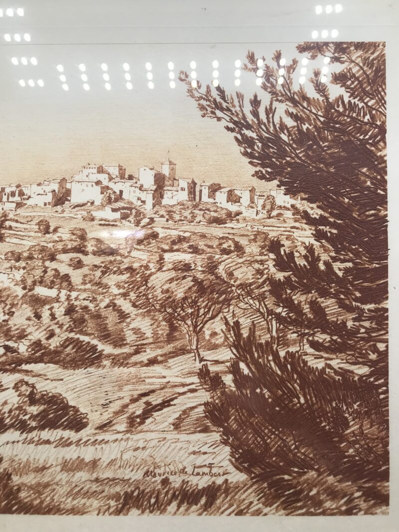 Alerte pépite!!! Amoureux d’art et de dessin, cette gravure ancienne de MIMET faite par Maurice de Lambert est pour vous. Une très jolie réalisation pleine de finesse dans les dessins. De couleur sépia ce paysage est magnifique. Il pourra apporter un touche de voyage et de nature sur vos murs. Maurice de Lambert était un peintre dessinateur, actif jusqu’en 1952, élève de Gustave Moreau, il exposa à Paris, New-York, Bruxelles et Madrid. Une belle œuvre en très bon état, quelques traces sur les contours de la feuille. La gravure est livrée avec un cadre simple de couleur marron. Taille de la gravure 24 cm sur 18 cm.