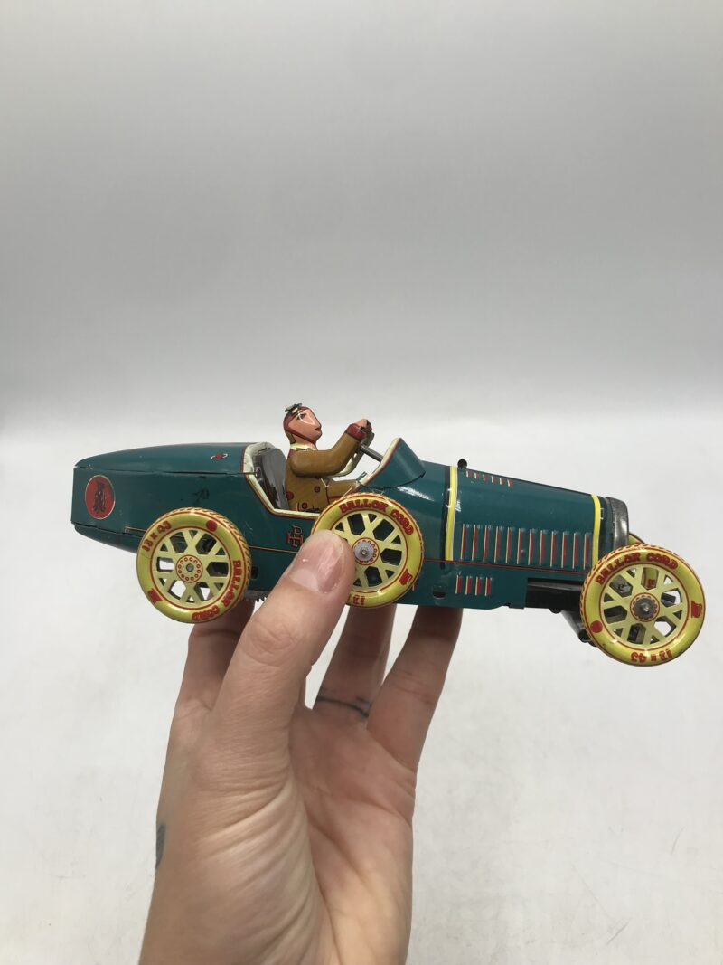 Duo de jouets anciens en tôle. Avis aux collectionneurs de jouets anciens, ou aux amateurs de décoration vintage originale. Voici des jouets mécanique en tôle des années 1960/1970. Ce lot est composé d’une voiture Bugatti et d’un ballon dirigeable. Les deux objets sont livrés avec leur clé remontoir, les systèmes mériteront une révision ils ne fonctionnent pas parfaitement. Jolis jouets anciens a chiner pour une touche de nostalgie dans votre foyer. Faite découvrir une autre époque à vos enfants et laisser l’imagination grandir. De vraies madeleines de Proust.