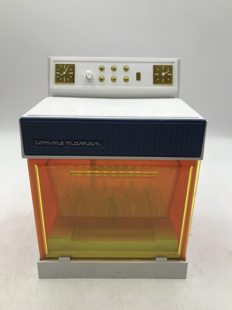 Alerte pépite !!! Jouets vintage « Comme maman » 1960. Duo de bloc de jouet « comme maman ». véritable marque des années 1960 jouet de collection. Nous avons le module cuisinière avec le four et un poulet à l’intérieur et le modèle lave vaisselle. Jouets d’époque qui feront le bonheur des collectionneurs avertis. Les systèmes électriques n’ont pas été testés. Pas de casse sur le plastique ils sont en bon état vu leur âge. Alors envie de nostalgie? Laissez vous emporter dans l’enfance, ils n’ont pas pris une ride. Avec leurs belles couleur fluo, ils vous taperont dans l’œil.
