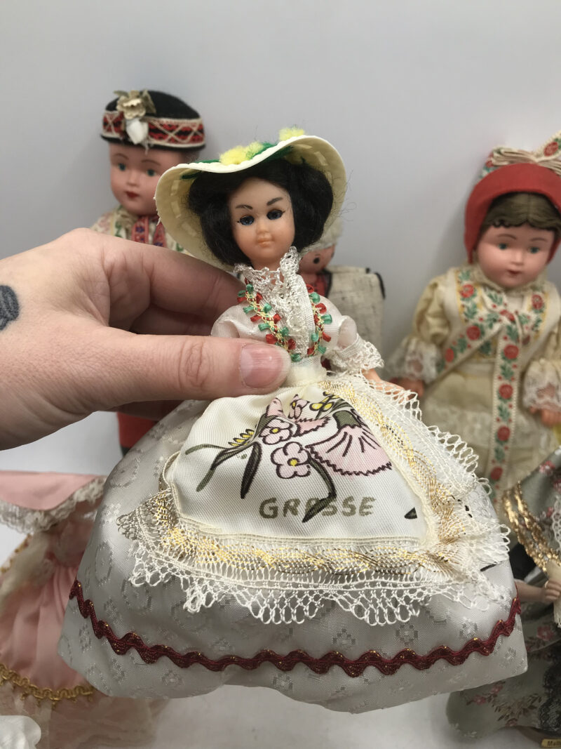 Lot 1 collection de poupées de voyage. Oyé Oyé avis aux fans de poupées, aux fans de voyages et aux collectionneurs dans l’âme. Les poupées sont toutes en bon état prêtes à briller sur vos étagères. Voici un joli lot composé de 30 poupées venues de toutes part. Un joli petit souvenir de voyage, qui avec le temps s’est transformé en une belle collection. Des poupées au visage en grès, en plastique, en tissu. Bref une multitude de matières et de taille. Les poupées ont une taille de 18 cm à 29 cm. Un beau voyage à domicile, laissez vous embarquer à travers le monde. Prêt pour l’embarquement?