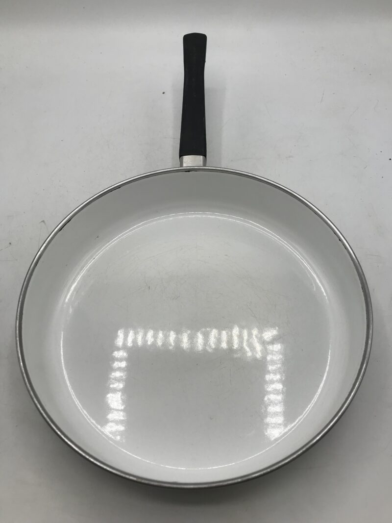 Alerte pépite !!! pour les amoureux des pièces de cuisine en émaille, ce lot va vous faire craquer. Il est composé d’une poêle d’un diamètre de 25 cm pour une hauteur de 5 cm, la poêle est décorée d’une frise de petites fleurs jaunes adorables. Et d’une casserole avec son couvercle, elle à un diamètre de 19 cm pour une hauteur de 8,5 cm, de jolis fleurs bleues viennent la décorer. Parfait pour compléter une déco vintage dans votre cuisine ou pour être utilisé. Des marques d’usures sont à prévoir (cf photos). Un beau duo pour une belle déco.
