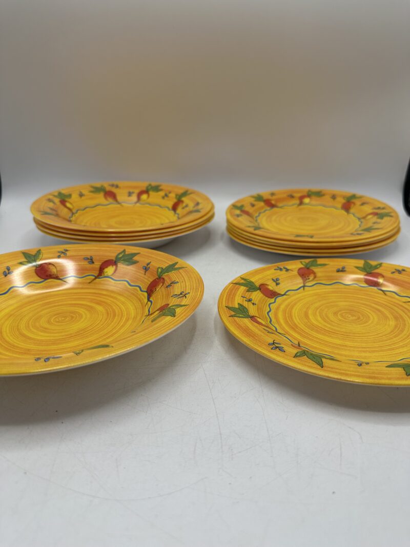Ajoutez une touche unique et vintage à votre art de la table avec ce lot de 11 assiettes Arcopal orange légumes.