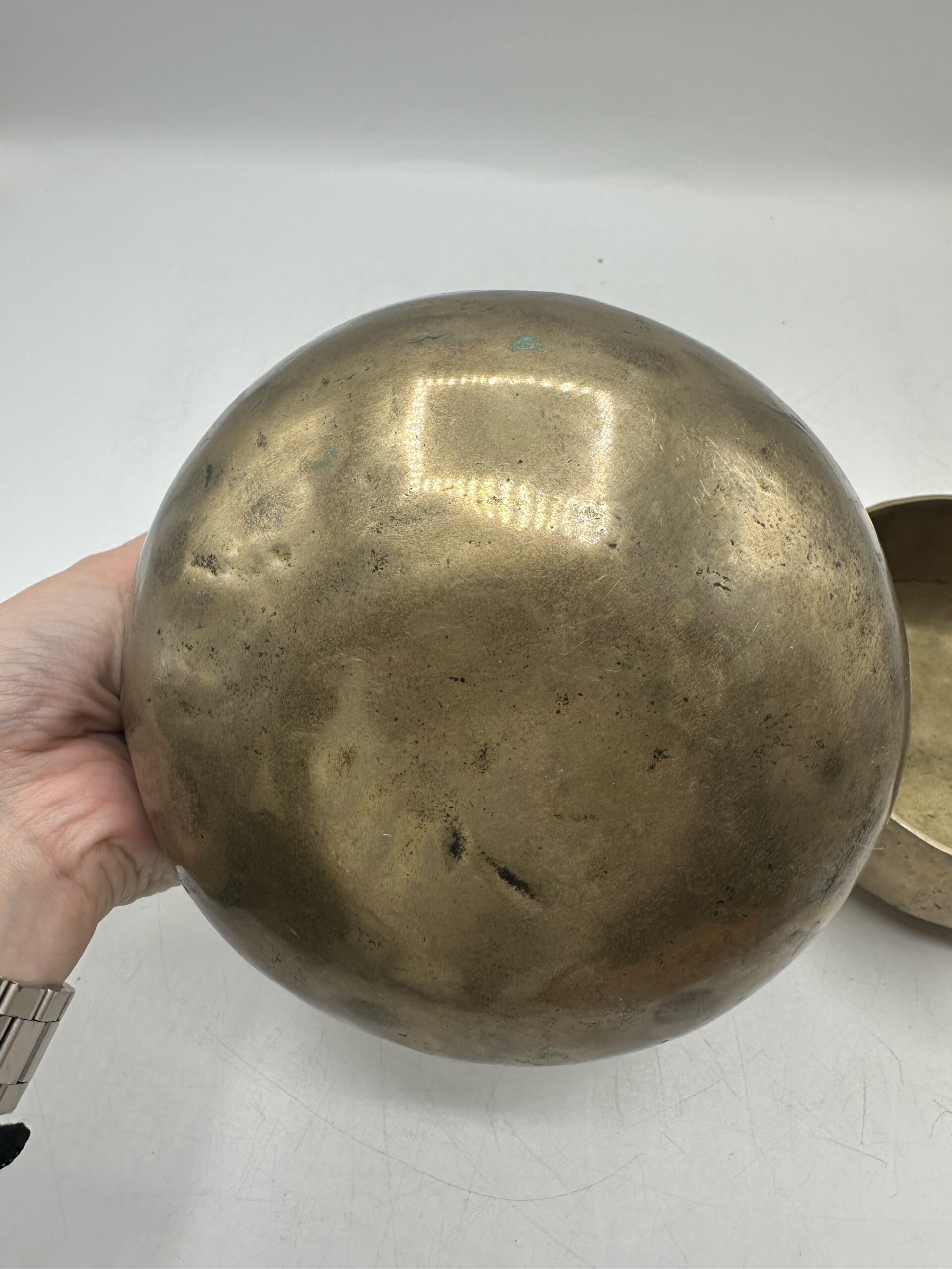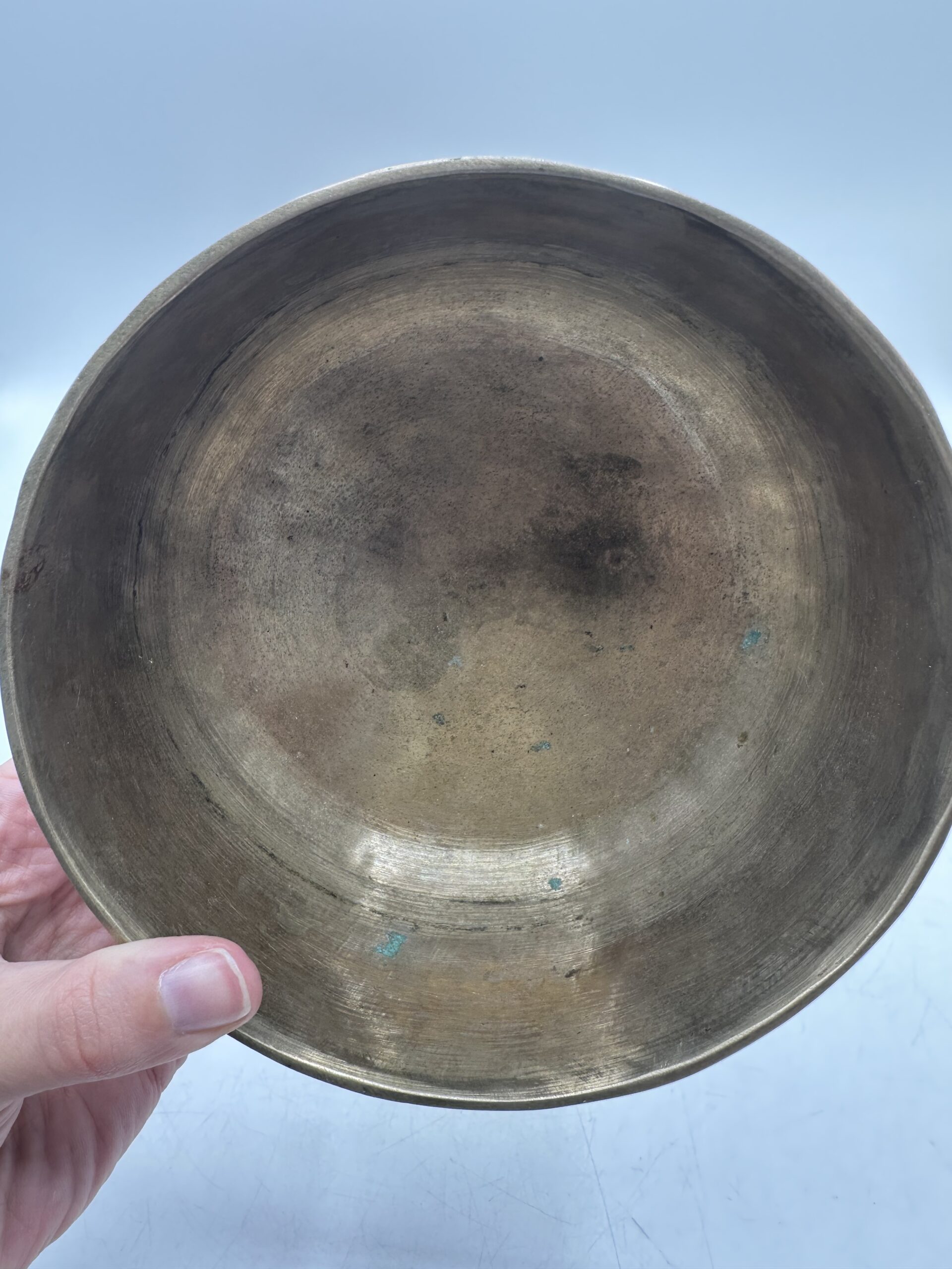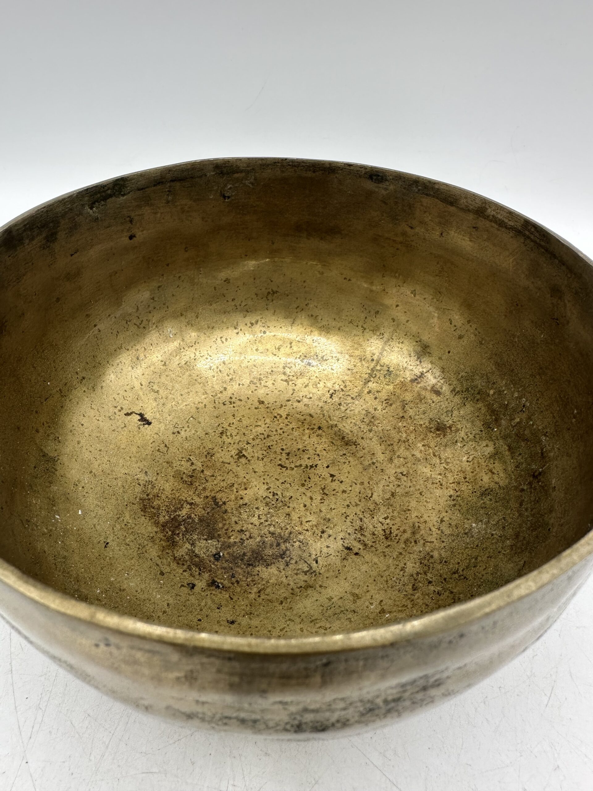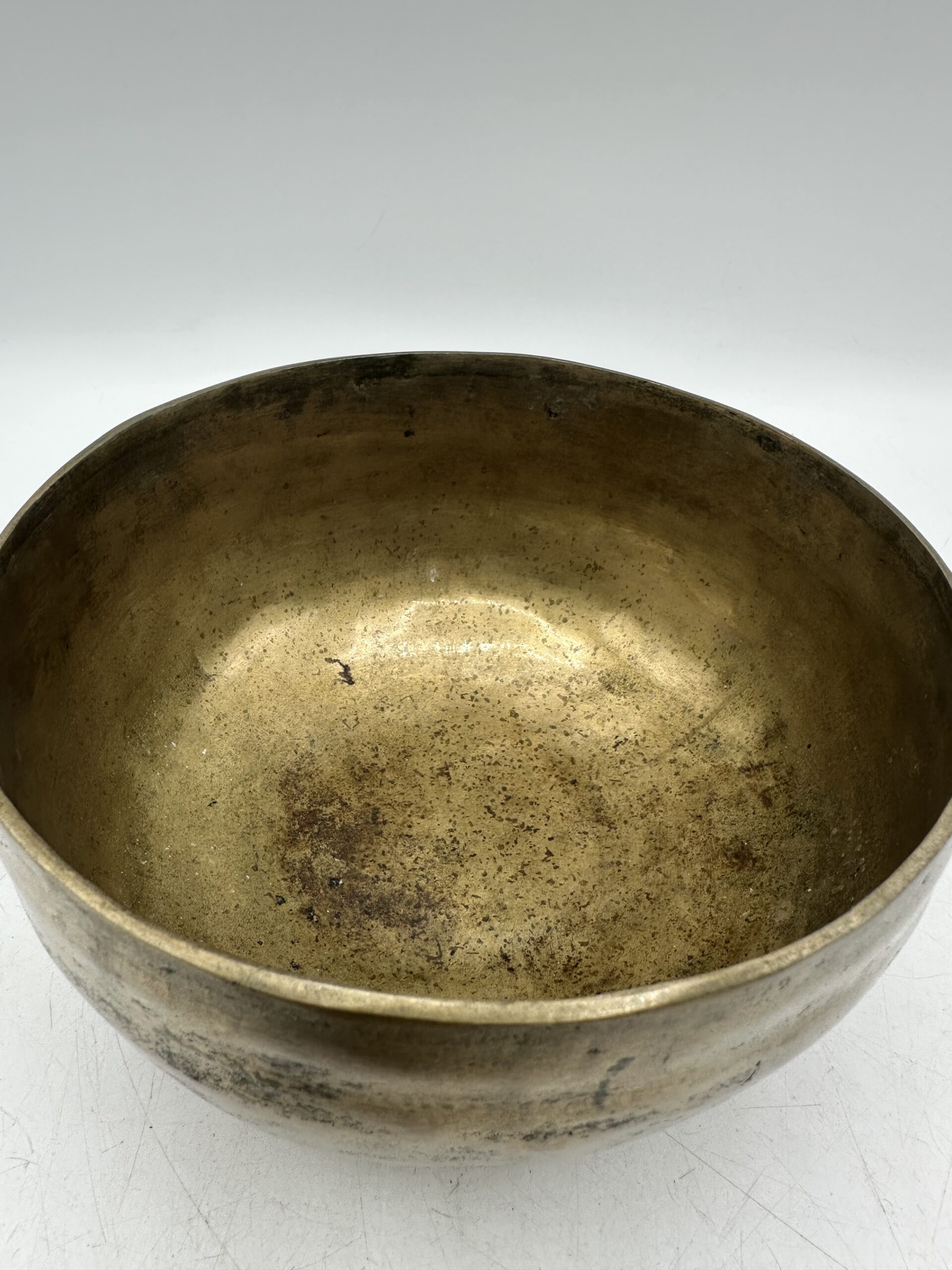 Les bols présentent une jolie patine qui témoigne de leur âge et de leur usage. Mais ils sont en bon état général malgré leurs petites imperfections. Ils semblent réalisés dans un alliage métallique traditionnel. Mais nous ne pouvons pas affirmer avec certitude la composition exacte.