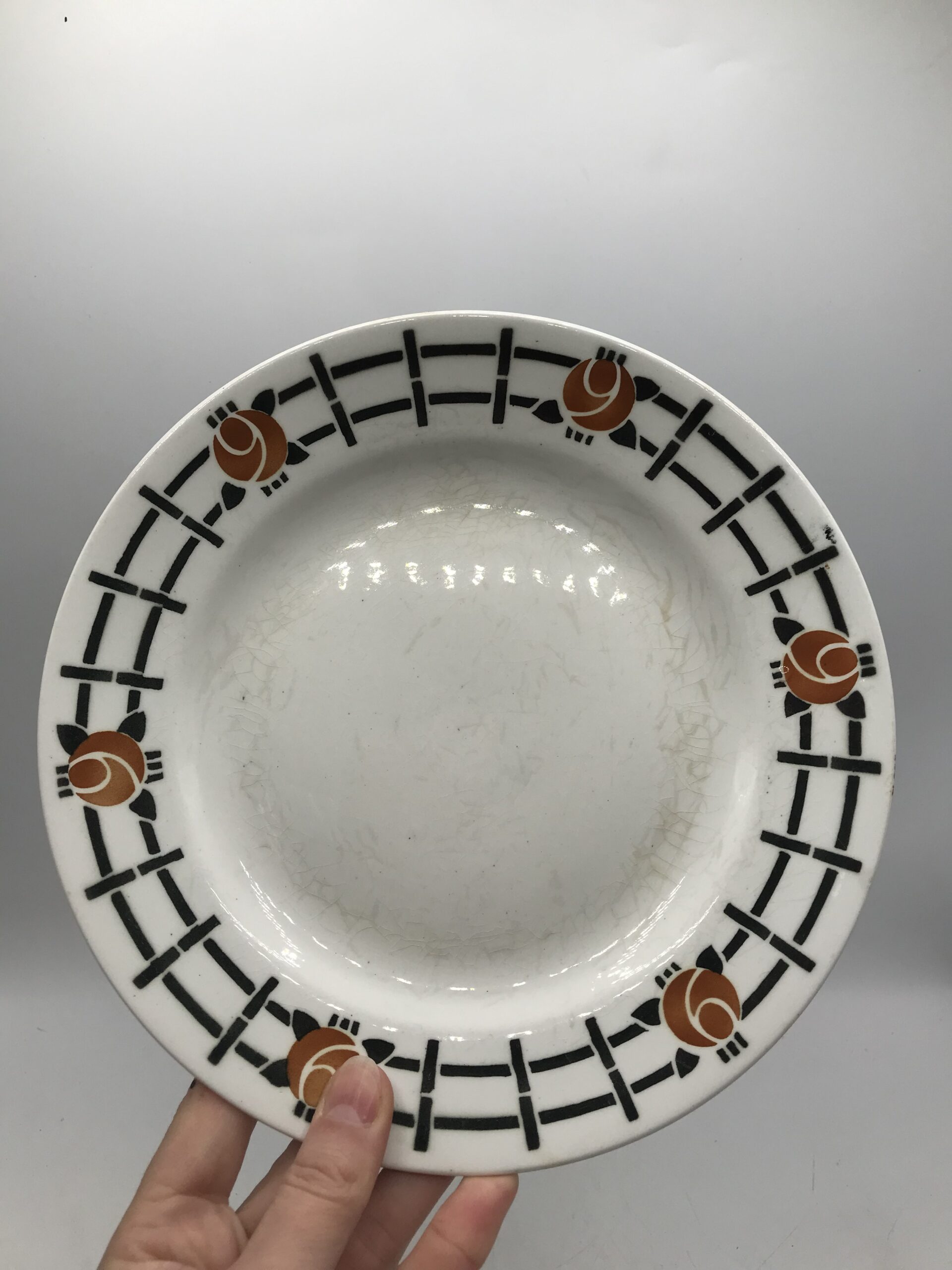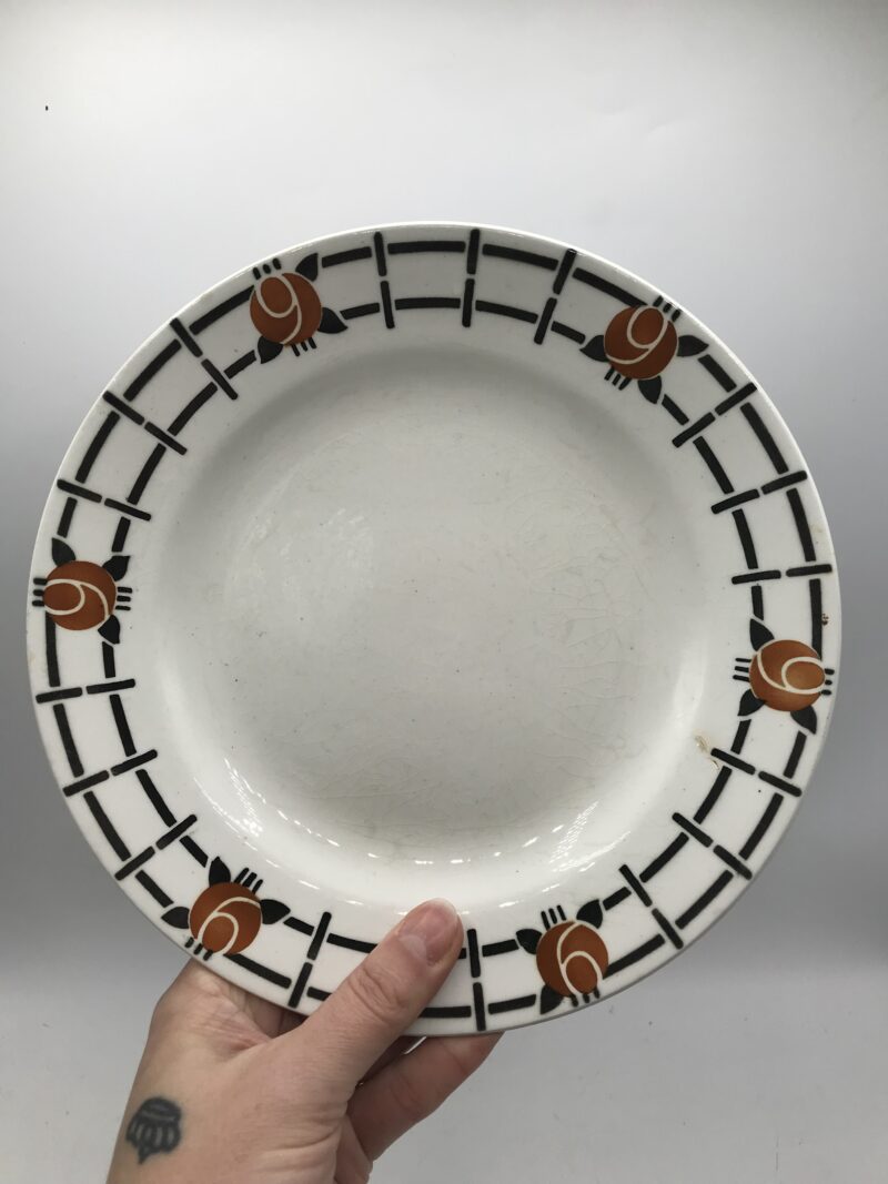 Alerte pépite !!!! Lot de 7 assiettes plates Sarreguemines collection « 6544 ». Comment dire magnifiques assiettes anciennes et vintage. Le modèle 6544 est juste splendide avec ses motifs géométriques retro et déco, il fait fureur dans le monde de le monde de la vaisselle déco. Les assiettes ont un diamètre de 22,5 cm pour une hauteur de 2,5 cm. Il est noté à l’arrière S6544 Sarreguemines Made In France. Des beautés. A noter certaines assiettes ont une forte patine (cf photos). Elles portent des traces du temps mais reste à tomber.