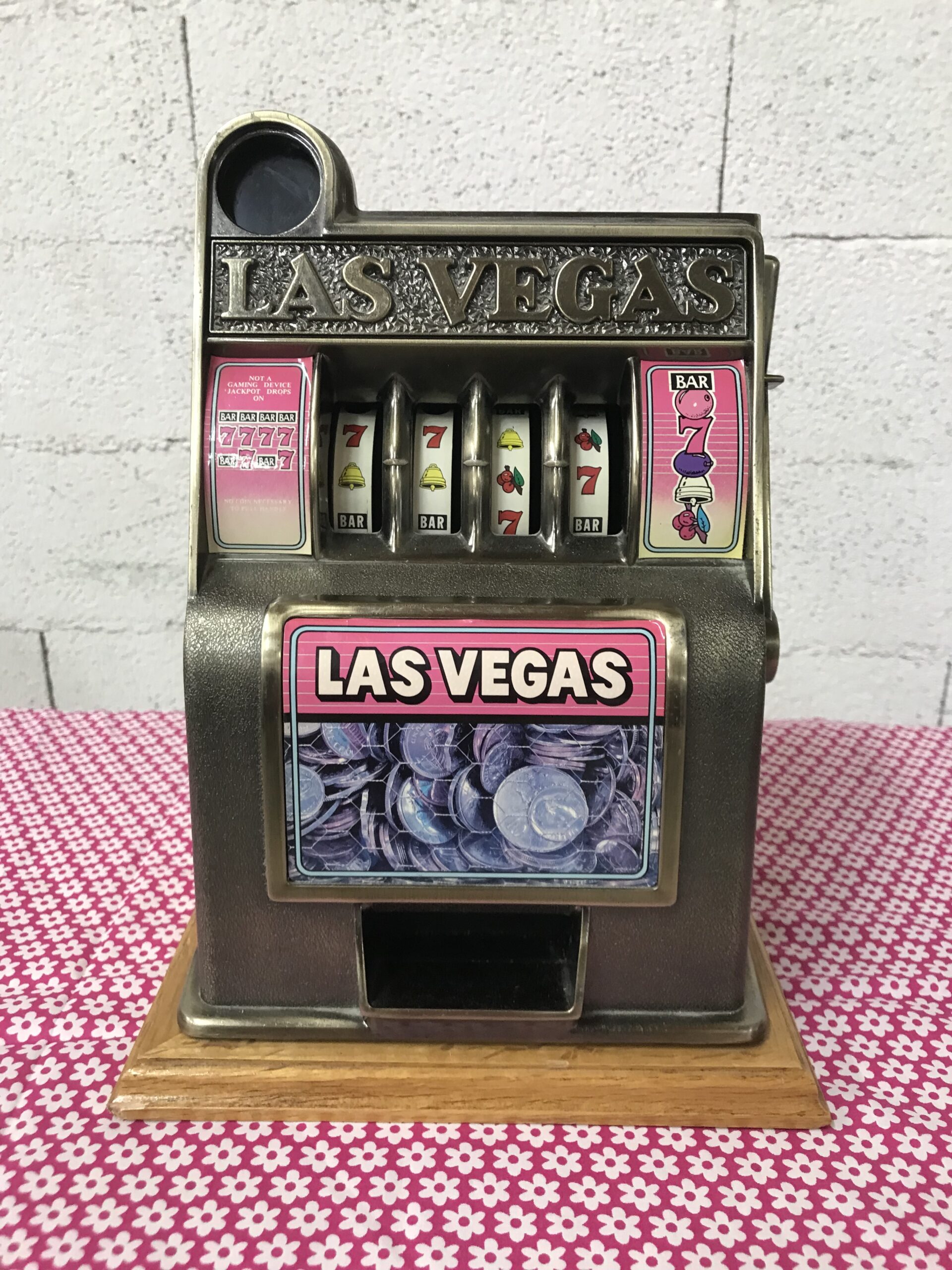 Alerte pépite !!! Machine à sous tirelire Las Vegas années 50/60. Machine par Darmon Paris en bois et métal. Un superbe jouet pour les grands et les petits. Elle fonctionne parfaitement. elle est en bon état et d’une belle qualité. Vous avez envie de faire des paris ou de vous amuser, elle est faite pour vous !!! Pas de risque de perdre d’argent !!! et la satisfaction d’avoir fait la combinaison gagnante. Un superbe objet de déco vintage qui peut trouver sa place dans n’importe qu’elle pièce. Faites vos jeux !!!!