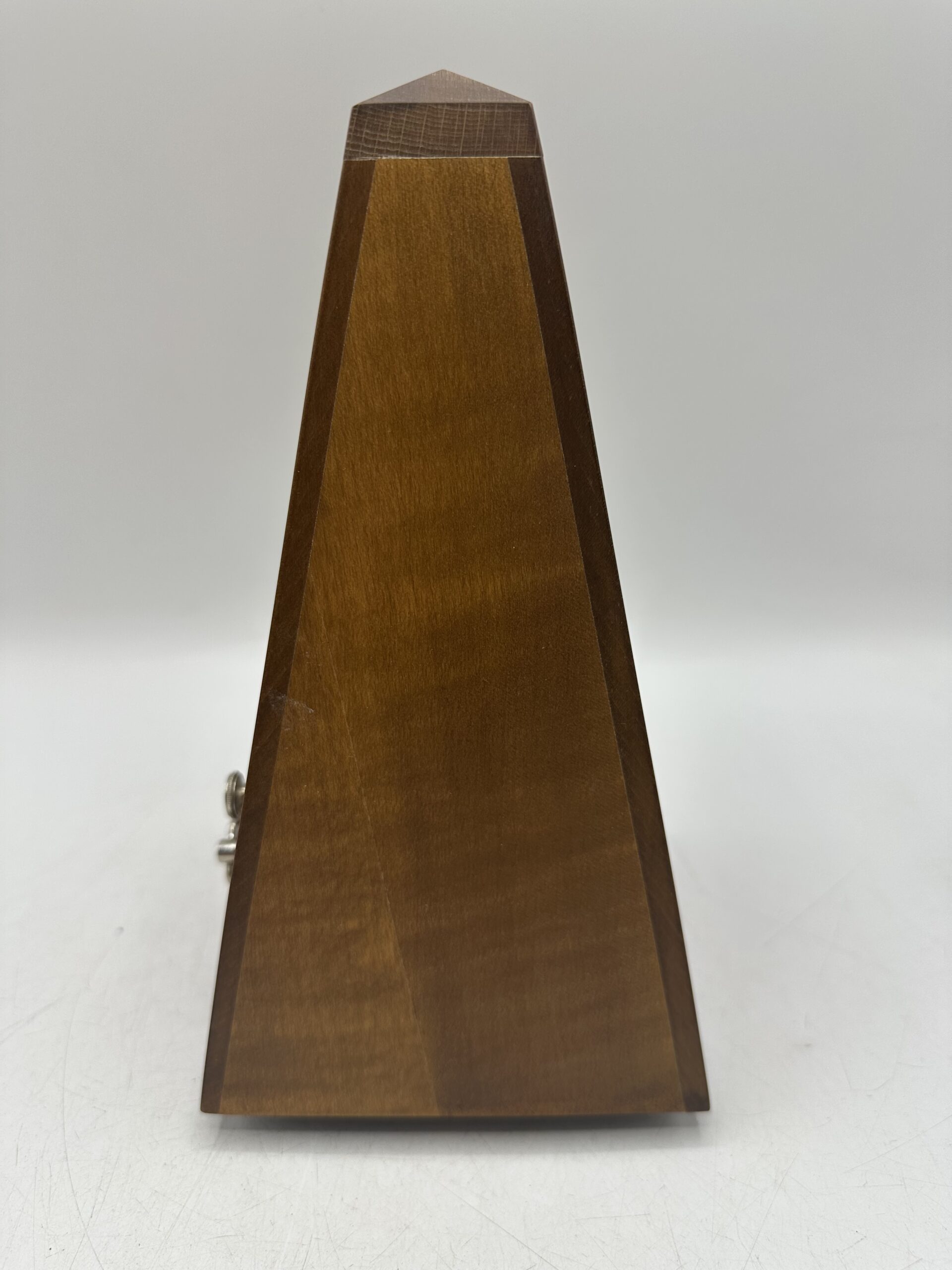 Le métronome est de forme pyramidale, et en bois qui apporte une touche chic et authentique.